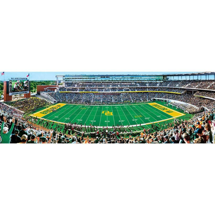 This MasterPieces NCAA 1000pc 13" x 39" Panoramic Baylor University Puzzle features the bird's eye view of Baylor's McLane Stadium with such incredible detail that it's common for you to find yourself as part of the photograph! To reduce its impact on our environment, the chipboard used in this puzzle is made of 100% recycled material.