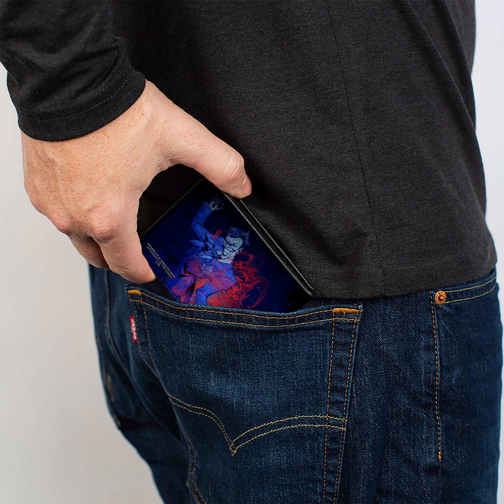 This awesome men's bi-fold wallet is made from premium vegan leather. It measures 4.0x3.5x0.5 Inches, and features the standard billfold, 5 card slots, and windowed ID holder. The logos are applied using advanced printing technologies, so the wallet will still look good after years of hard use. This product is made by Buckle-Down, Inc. and Officially Licensed by DC Comics.