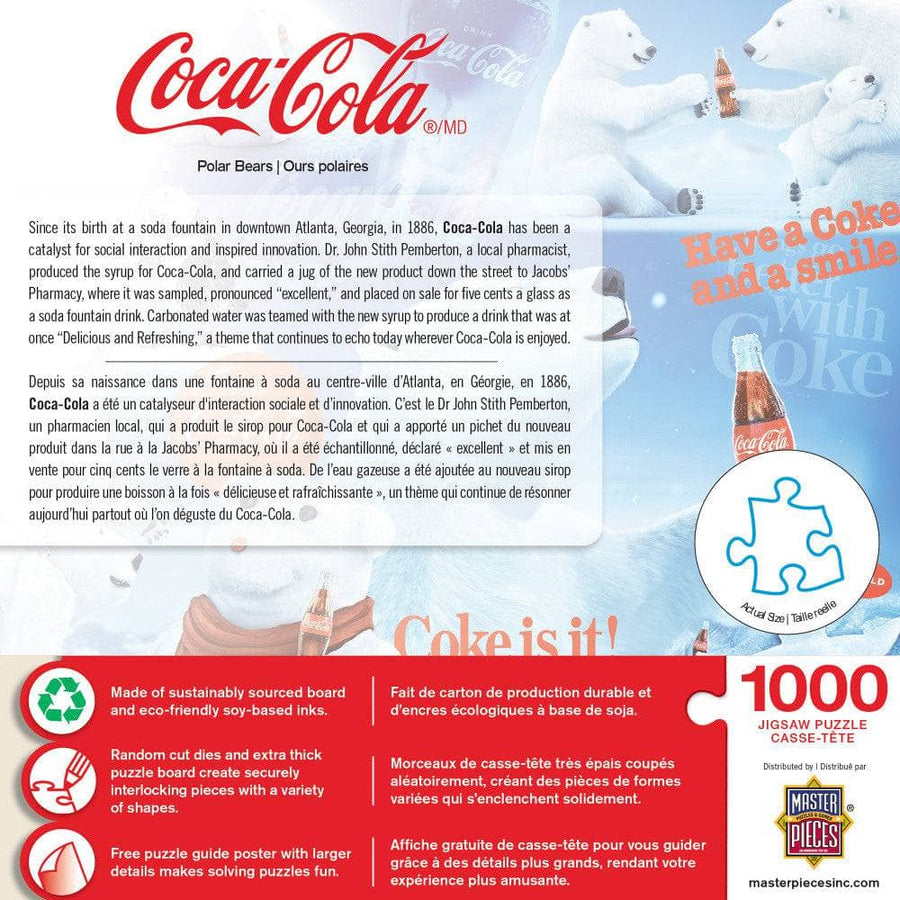 Dive into the world of Coca-Cola nostalgia with this captivating 1000 piece puzzle featuring the iconic Coca-Cola Polar Bears. Perfect for puzzle enthusiasts aged 14 and up, this jigsaw puzzle offers a delightful challenge that enhances hand-eye coordination, problem-solving skills, and concentration. Crafted from high-quality blue chip board, the precision-cut pieces ensure a seamless fit, making it a joy to assemble. The vibrant white and blue colors bring the charming polar bear scene to life, making it a must-have for any Coca-Cola collector or puzzle aficionado. Measuring 8 x 7.8 x 2.2 inches, this portable puzzle is ideal for tabletop play, allowing you to enjoy it anywhere. The flat free package ensures easy storage and transport, while the included poster serves as a helpful guide. Whether you're a fan of thousand pc jigsaw puzzles or looking for a unique addition to your collection of coke puzzles for adults 1000 pieces, this masterpiece by Masterpieces is sure to impress. Embrace the challenge and enjoy hours of entertainment with this timeless Coca-Cola puzzle.