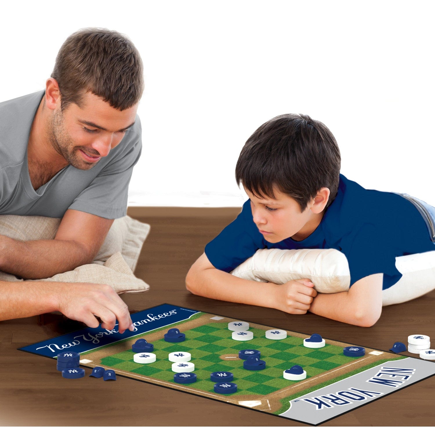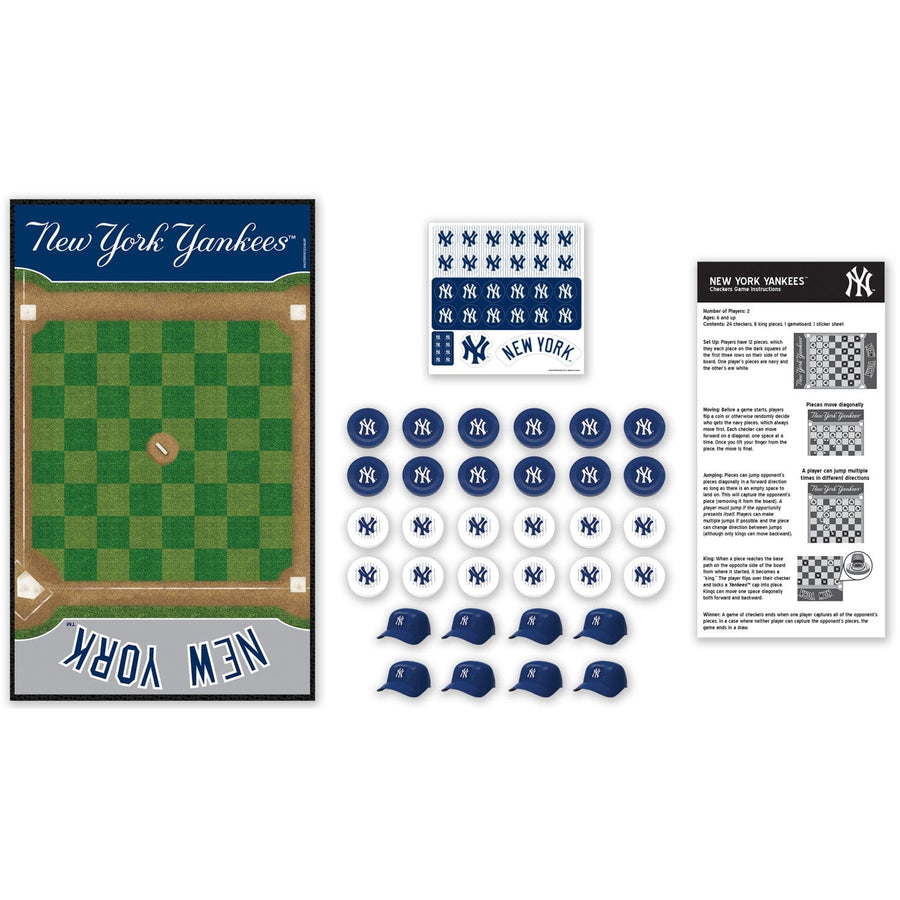 If you're a fan of the New York Yankees, then you're going to love this officially licensed MasterPieces MLB New York Yankees Checkers Board Game. This classic game of checkers is a ton of fun for children and adults ages 6 and up, and it's a great way to show your New York Yankees pride. This checkers game comes with 24 New York Yankees checkers pieces, 8 baseball helmet king pieces, a 13 inches x 21.375 inches game board, 1 sticker sheet, and an instruction sheet. So get ready to put your skills to the test and crown yourself the checkers champion!