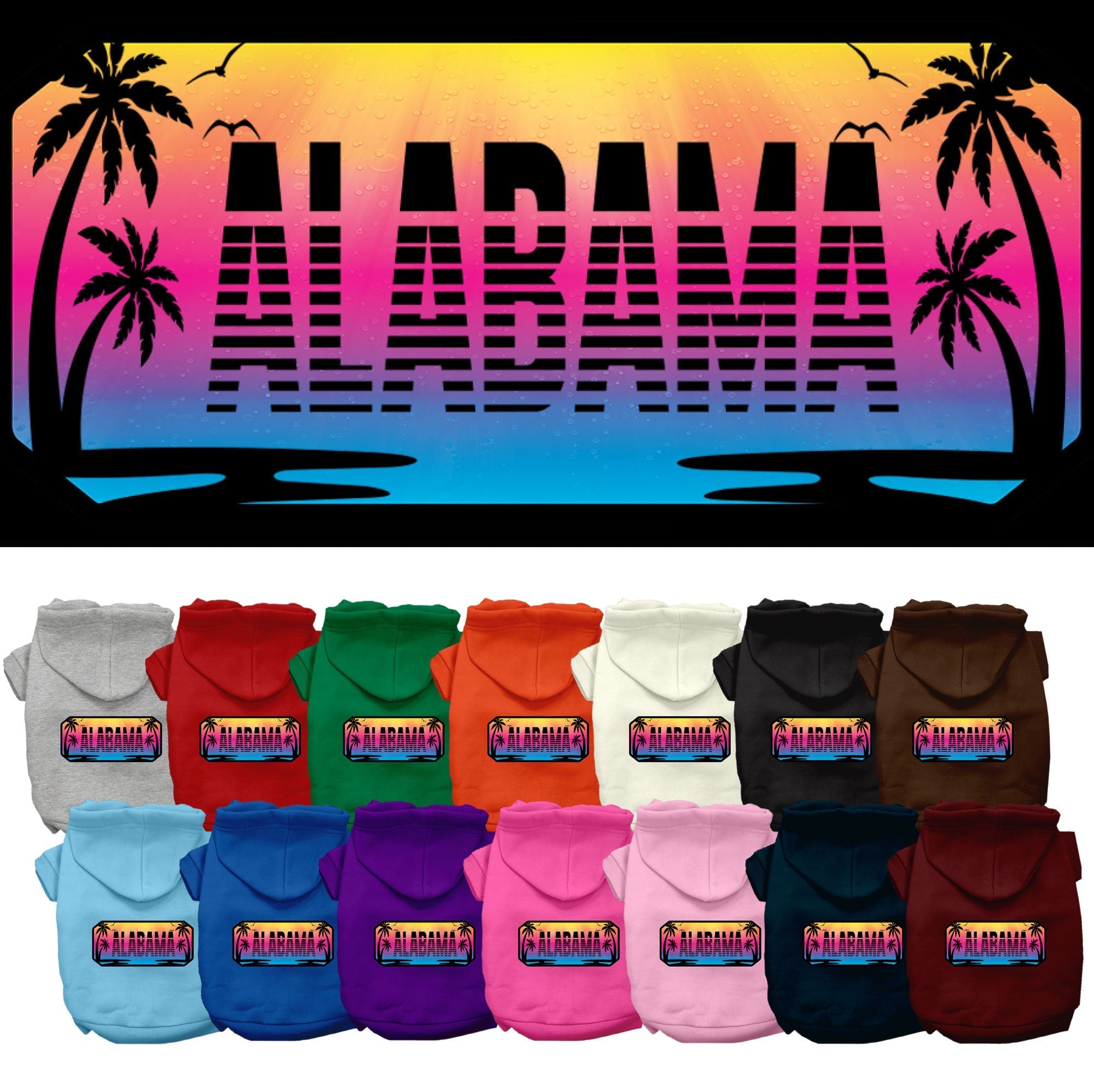 Pet Dog & Cat Screen Printed Hoodie for Small to Medium Pets (Sizes XS-XL), "Alabama Beach Shades"