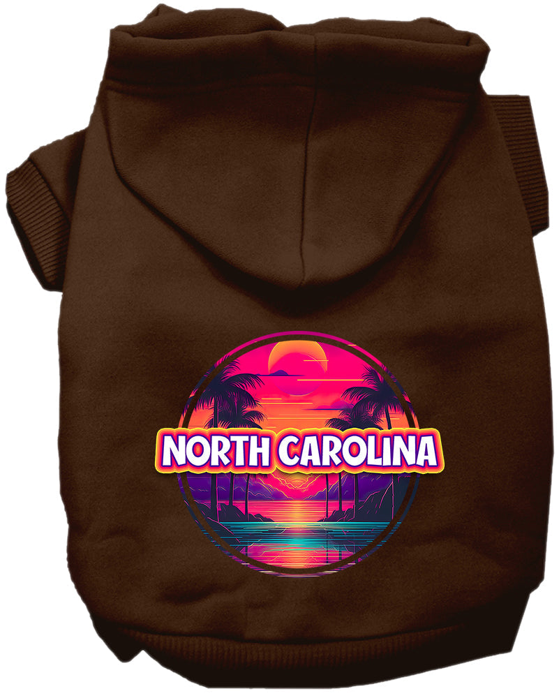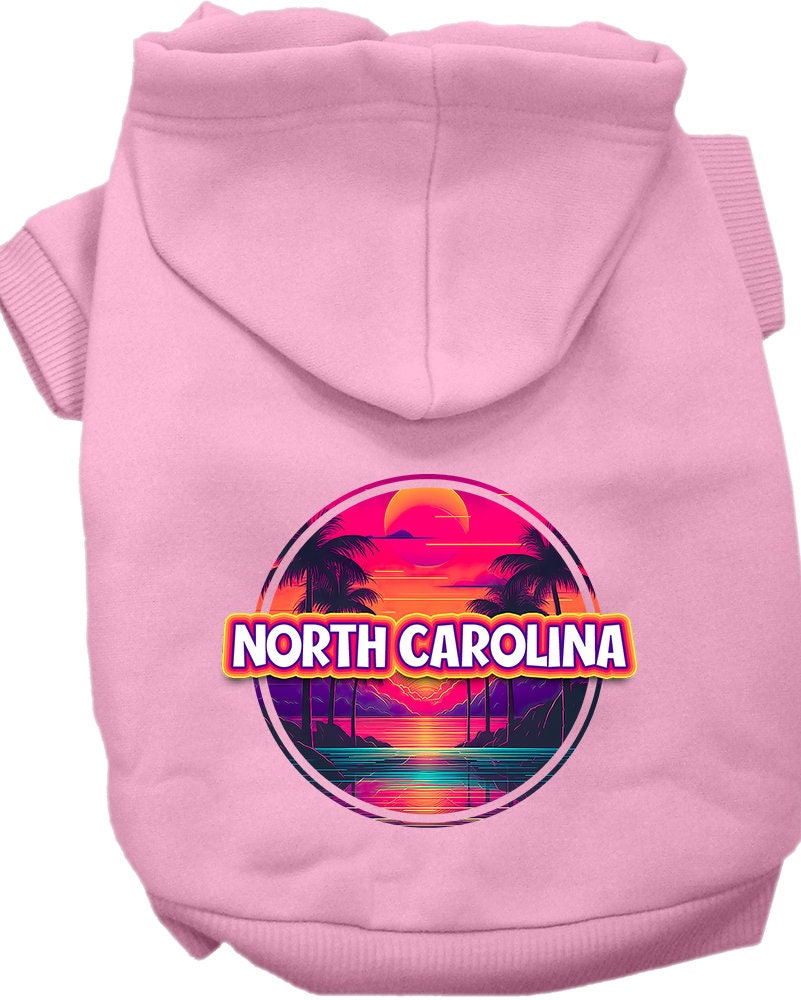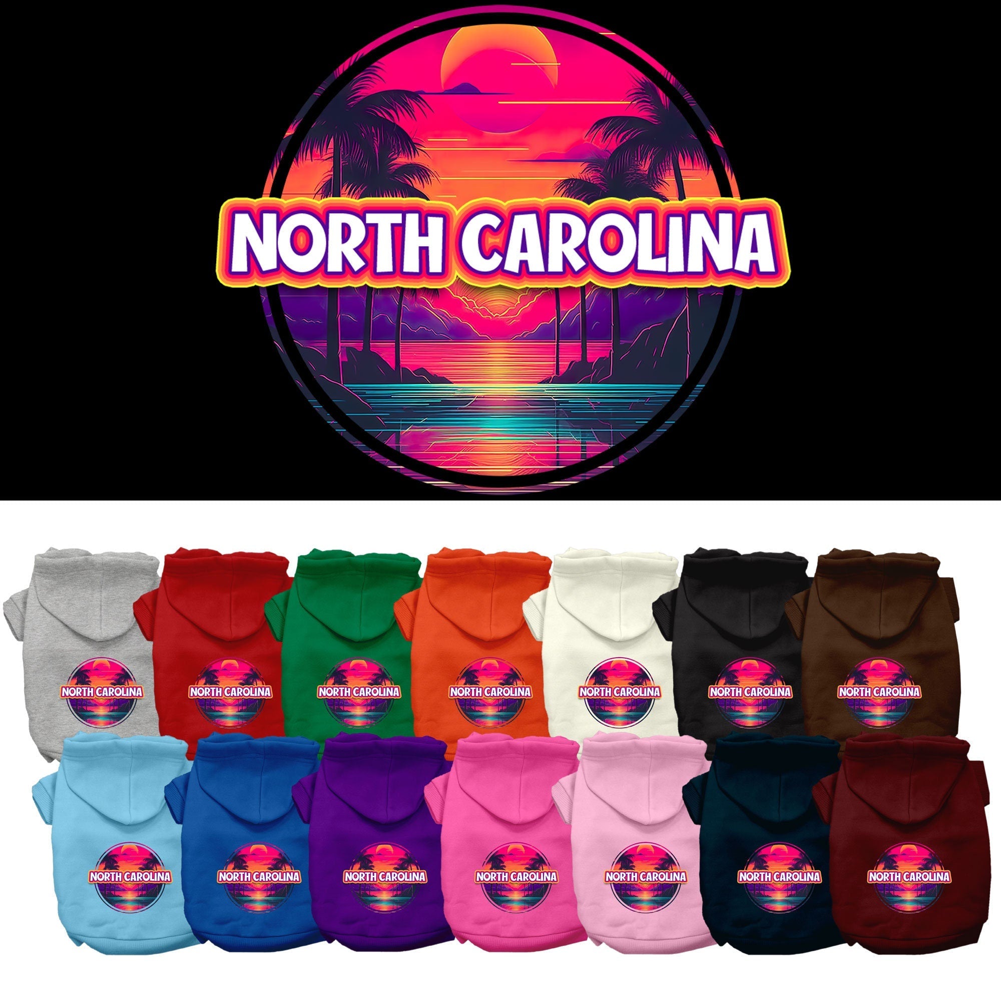 Pet Dog & Cat Screen Printed Hoodie for Small to Medium Pets (Sizes XS-XL), "North Carolina Neon Beach Sunset"