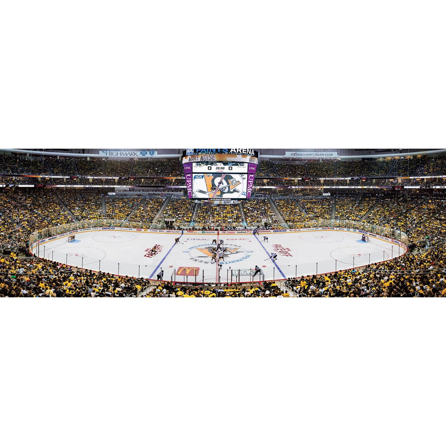 This MasterPieces NHL 1000pc 13" x 39" Panoramic Pittsburgh Penguins Puzzle features the view from the sky box seat of the Pittsburgh Penguins' Consol Energy Center rink with such incredible detail that it's common for you to find yourself as part of the photograph! To reduce its impact on our environment, the chipboard used in this puzzle is made of 100% recycled material.