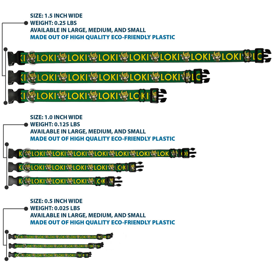 Plastic Clip Collar - Kawaii LOKI Standing Pose/Text Green/Yellow