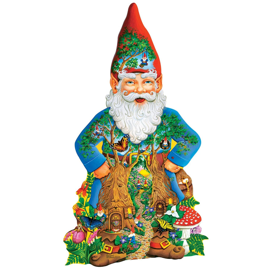 This MasterPieces 500pc Garden Gnome shaped puzzle. This garden gnome is filled with all the secrets hidden in his magical garden in a fun shaped puzzle. The secure die includes three special shaped puzzle pieces related to the magical gnome garden. To reduce their impact on our environment, the chipboard used in these puzzles is made of 100% recycled material.