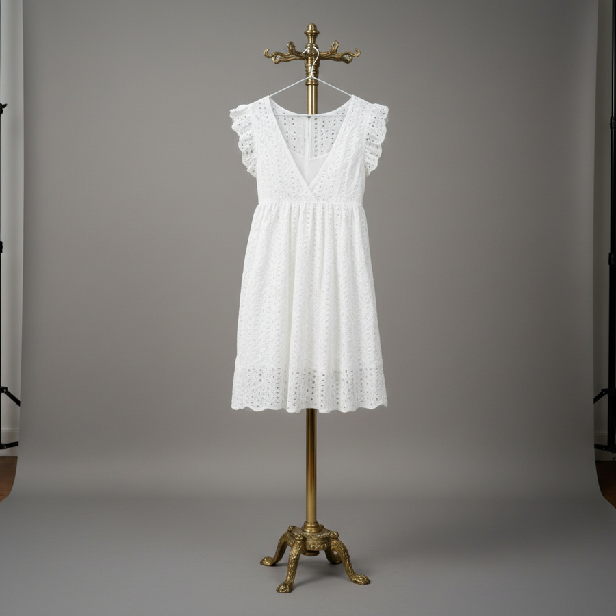 Super Sweet Eyelet Dress in White | Short Casual Dress [Available in SM-XL]