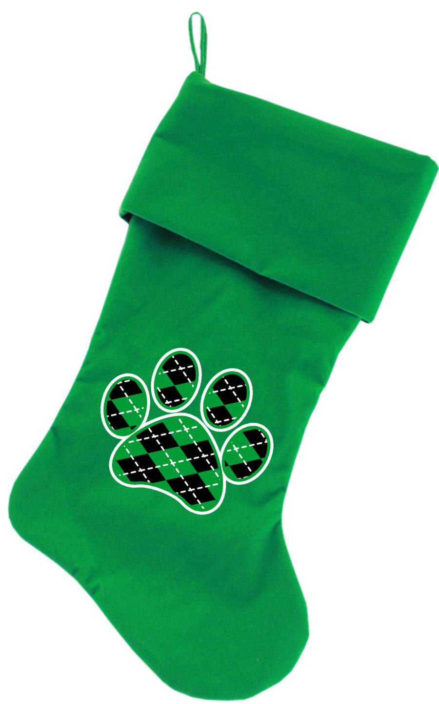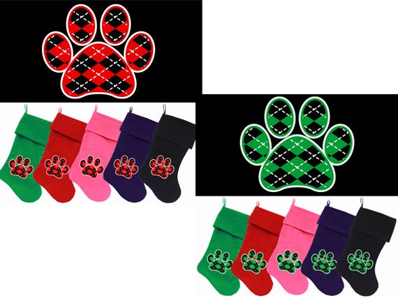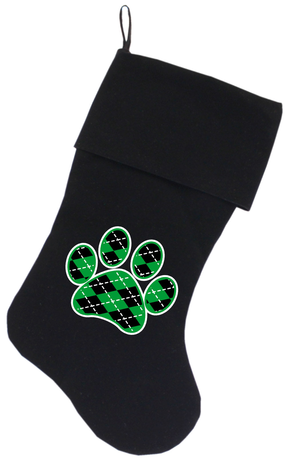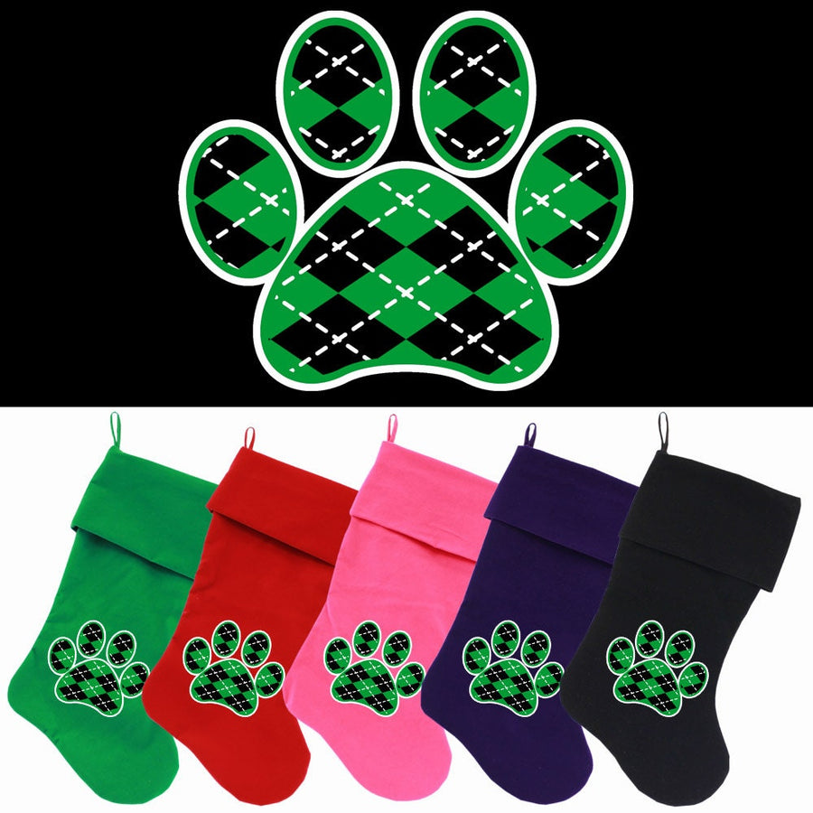 Velvet Christmas Stocking Screen Printed, "Argyle Paw"