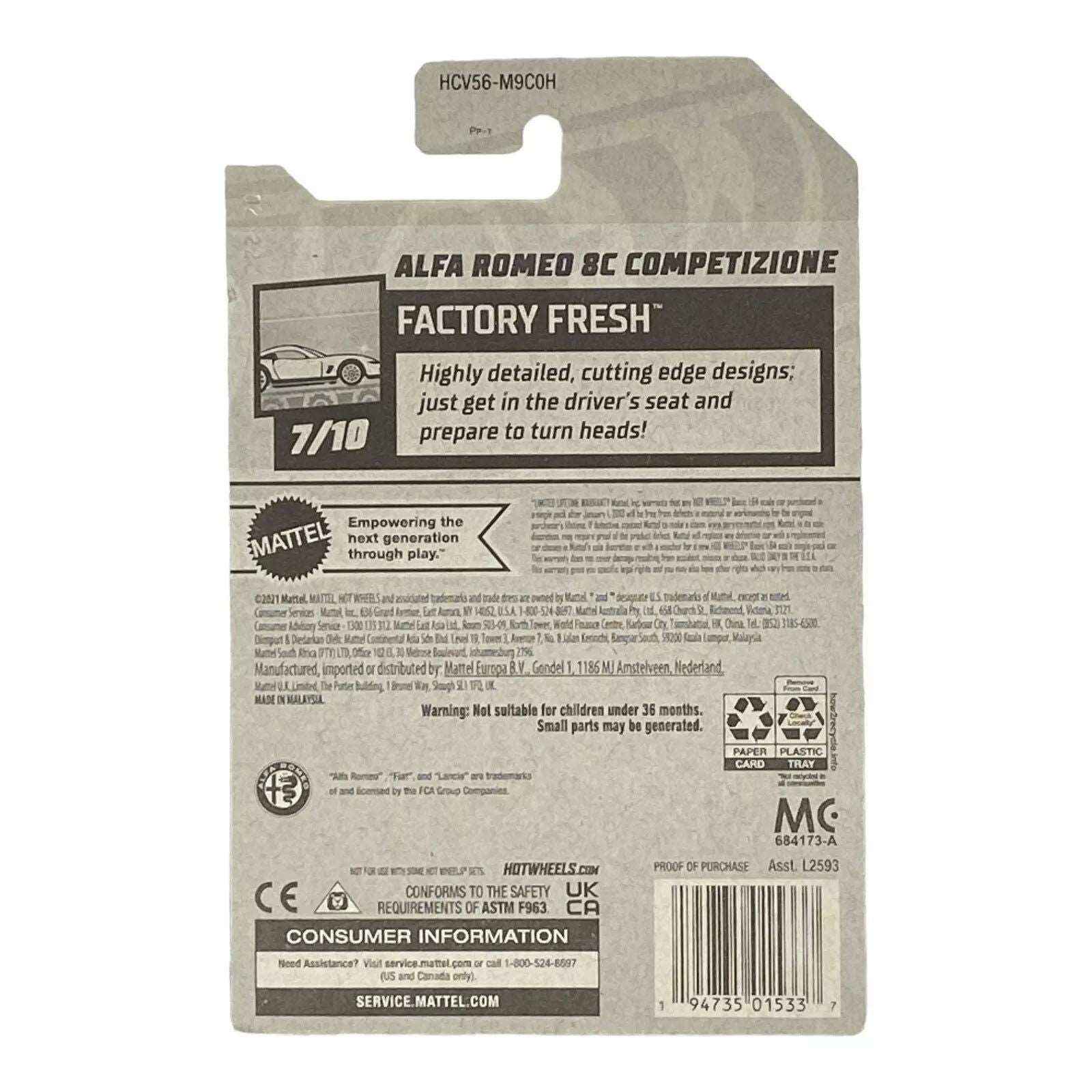 Don't miss your chance to own the Hot Wheels Alfa Romero 8C Competizione - Factory Fresh Series 7/10. Be part of the vibrant Hot Wheels family, whether you’re a long-time collector or just beginning your journey. This exquisite piece is ready to transform your collection or serve as a perfect gift that speaks volumes.