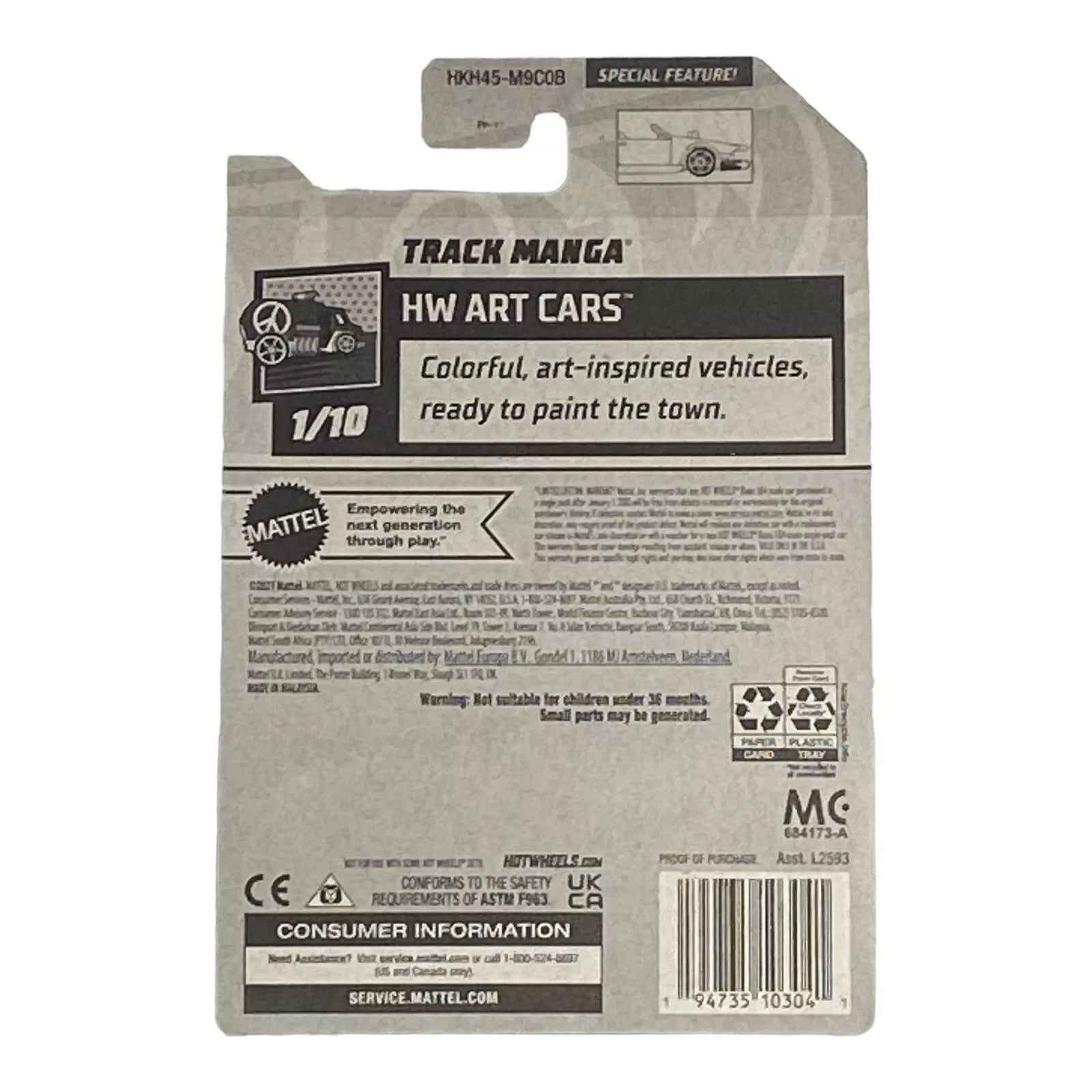 Introducing the Hot Wheels Track Manga - a stunning addition to the Art Cars Series that brings together speed and creativity in a unique racing experience. This collector's item, perfect for both kids and adults, combines the beloved Hot Wheels vehicles with the captivating world of manga art. Each car is an artistic marvel, designed not just for racing but for showcasing style and personality.