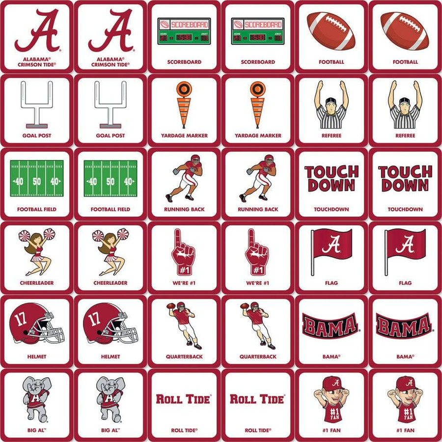 Looking for a fun way to spend some time with the family? Look no further than the NCAA Alabama Crimson Tide Matching Game. This exciting game puts a sports spin on the classic matching game, and is perfect for children, adults, and families of all ages. With 18 unique pairs of symbols, it's sure to keep you entertained for hours on end. Plus, the officially licensed NCAA picture cards are made with high-quality stock for durability and lasting enjoyment. So grab a partner and get ready to test your memory and sports knowledge with the NCAA Alabama Crimson Tide Matching Game!