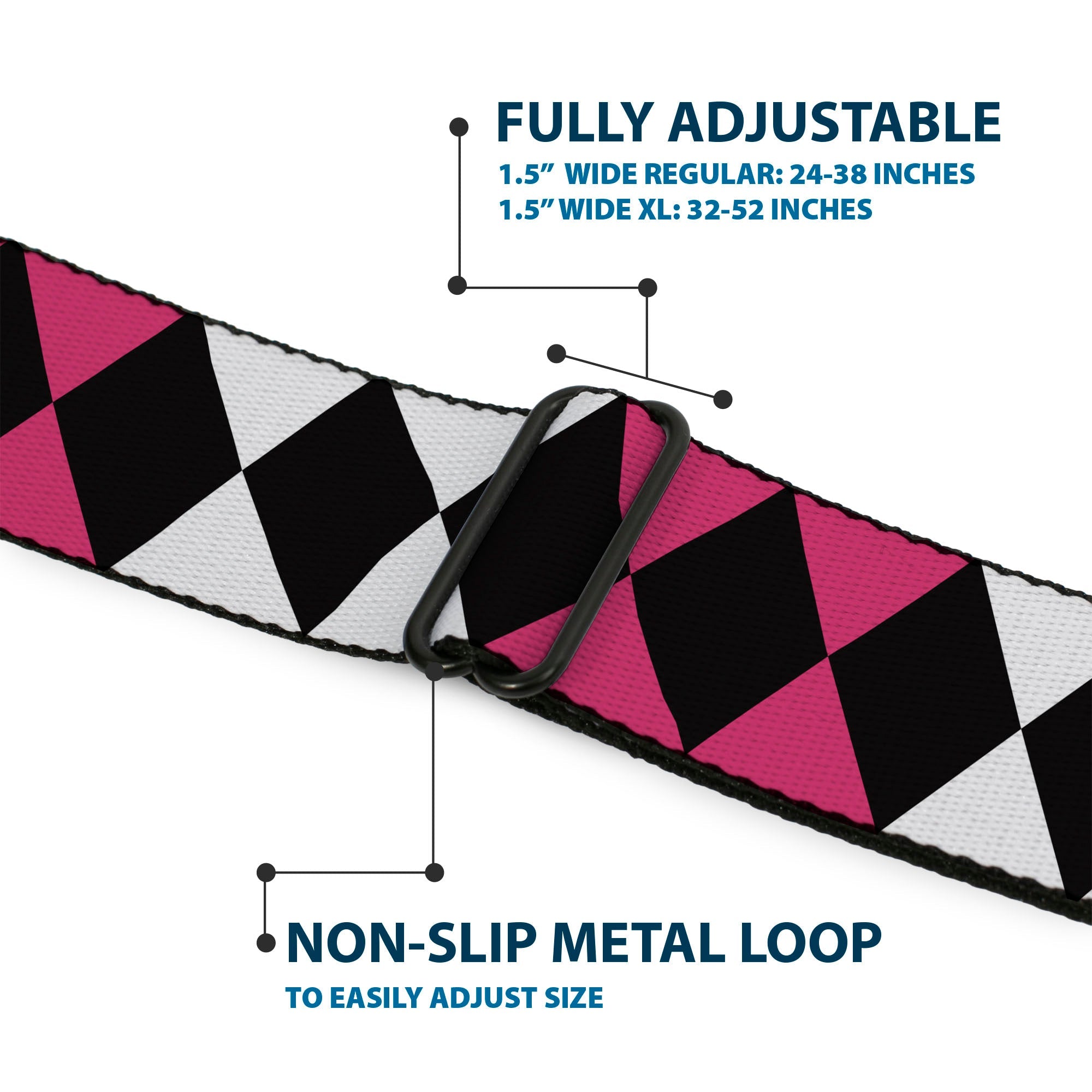 Birds of Prey HARLEY QUINN Text Full Color Black/Pink Seatbelt Belt - Birds of Prey Harley Quinn Diamonds Split White/Black/Pink/Black Webbing