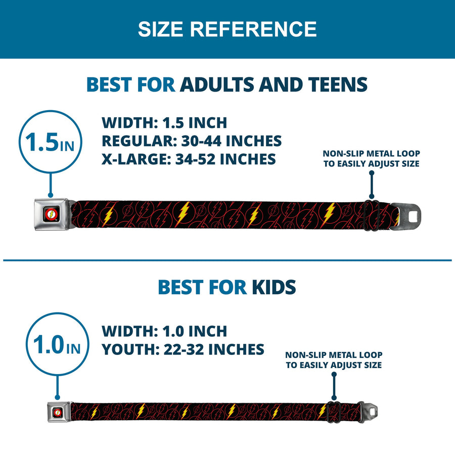 Buckle-Down's iconic Seatbelt Belt is a cool, smart, and exciting blend of fashion and function. Always a conversation starter, our Seatbelt Belt adjusts to perfectly fit your waist while showcasing your unique sense of style. Our Seatbelt Belts are made with authentic automotive style seatbelt buckles making them easy to open and close at the push of a button. Our adult-size Seatbelt Belts are 1.5 inches wide and our kid-sized Seatbelt belts are 1.0 inch wide. This product is Handcrafted in USA by Buckle-Down Inc. and officially licensed by DC Comics.