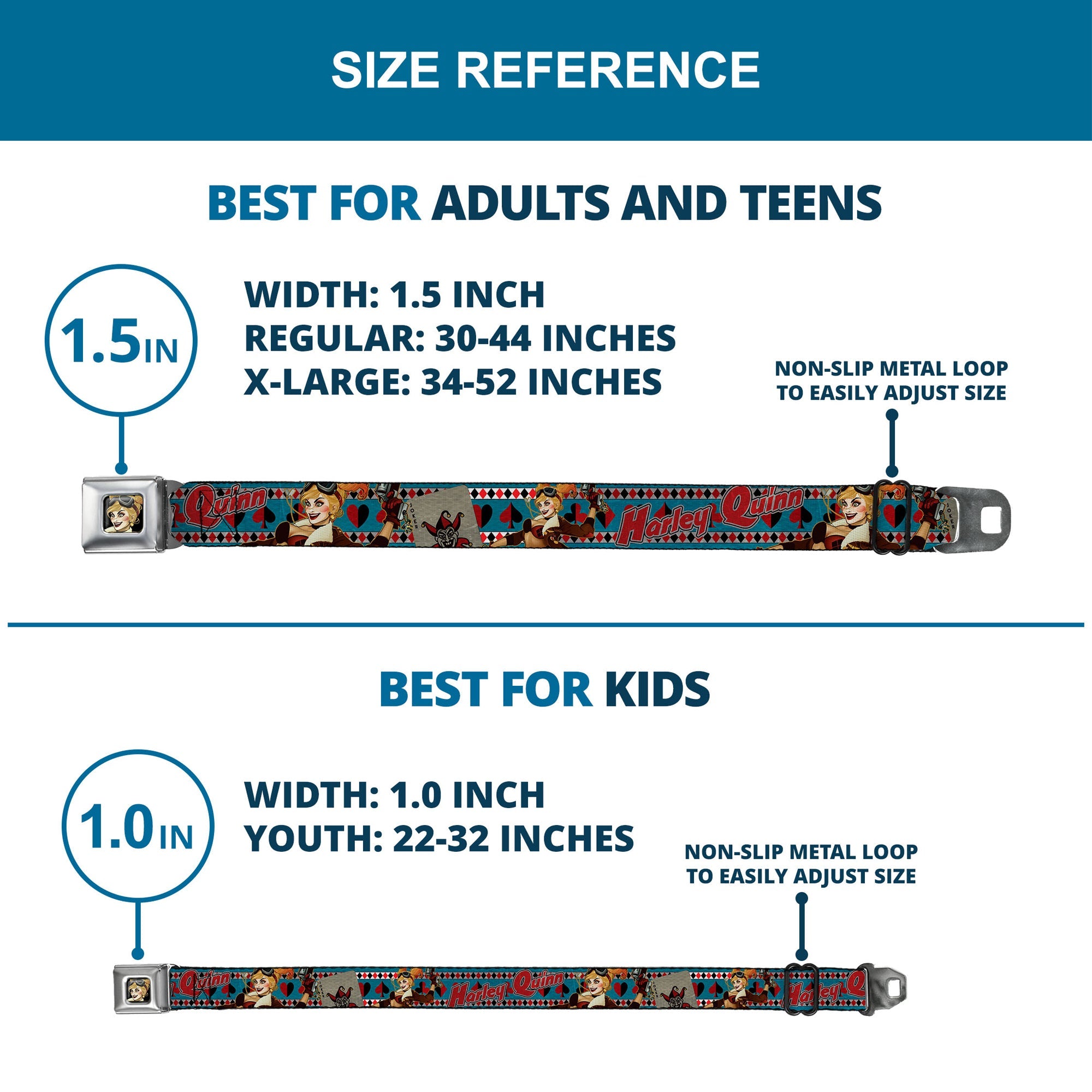 Buckle-Down's iconic Seatbelt Belt is a cool, smart, and exciting blend of fashion and function. Always a conversation starter, our Seatbelt Belt adjusts to perfectly fit your waist while showcasing your unique sense of style. Our Seatbelt Belts are made with authentic automotive style seatbelt buckles making them easy to open and close at the push of a button. Our adult-size Seatbelt Belts are 1.5 inches wide and our kid-sized Seatbelt belts are 1.0 inch wide. This product is Handcrafted in USA by Buckle-Down Inc. and officially licensed by DC Comics.