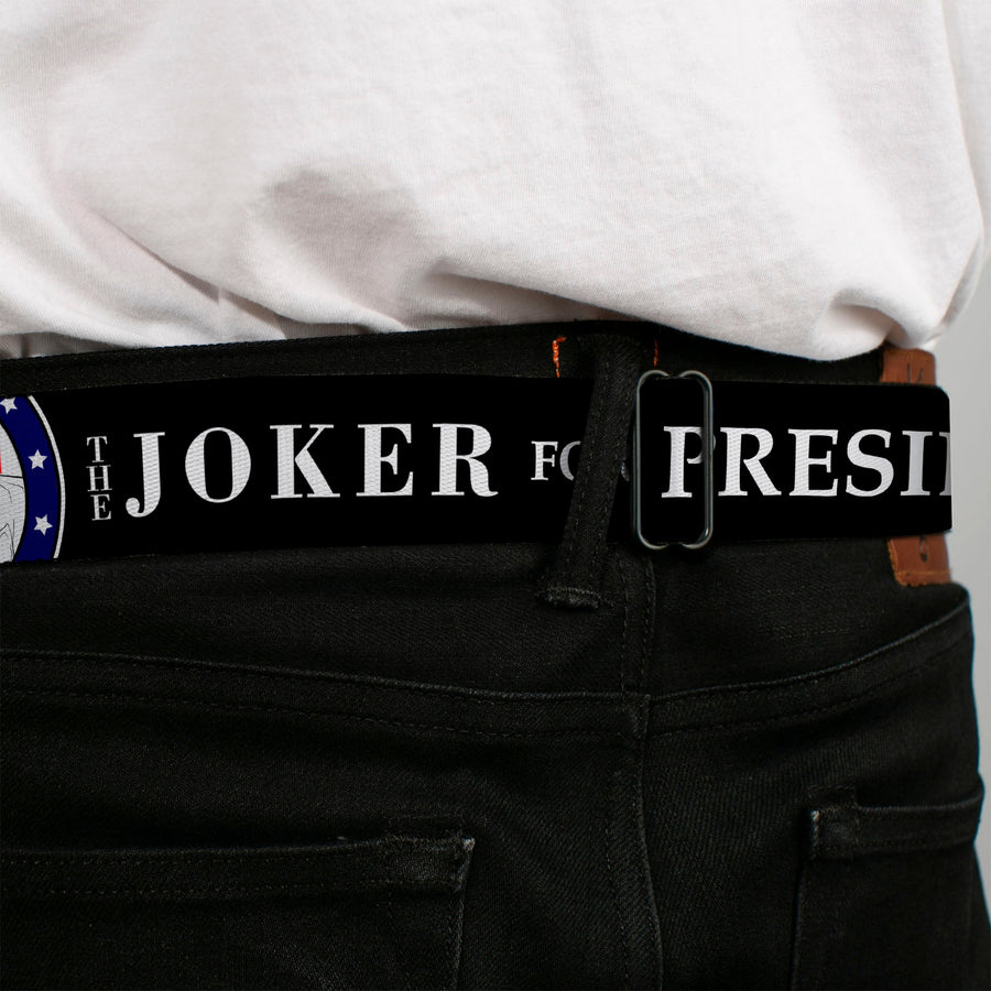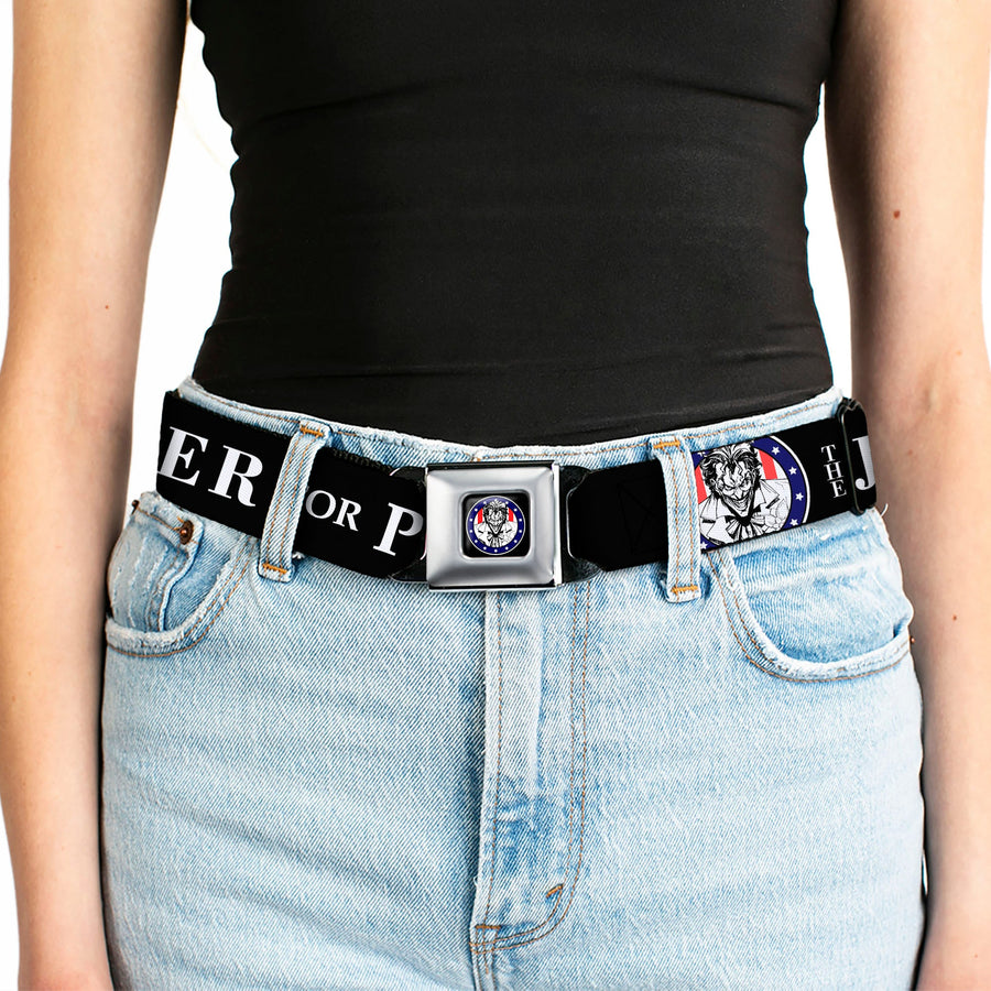 Joker Presidential Seal Full Color Black White Blue Red Seatbelt Belt - THE JOKER FOR PRESIDENT/Joker Presidential Seal CLOSE-UP Black/White/Blue/Red Webbing
