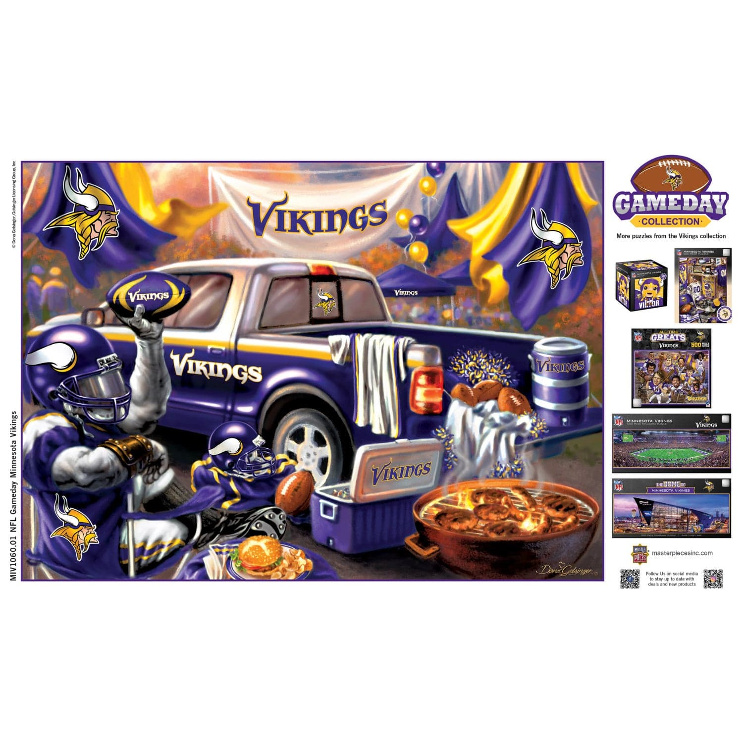 This MasterPieces NFL 1000pc 19.25" x 26.75" Minnesota Vikings Puzzle is perfect for any Vikings fanatic. Now fans can play all year long! To reduce its impact on our environment, the chipboard used in this puzzle is made of 100% recycled material.