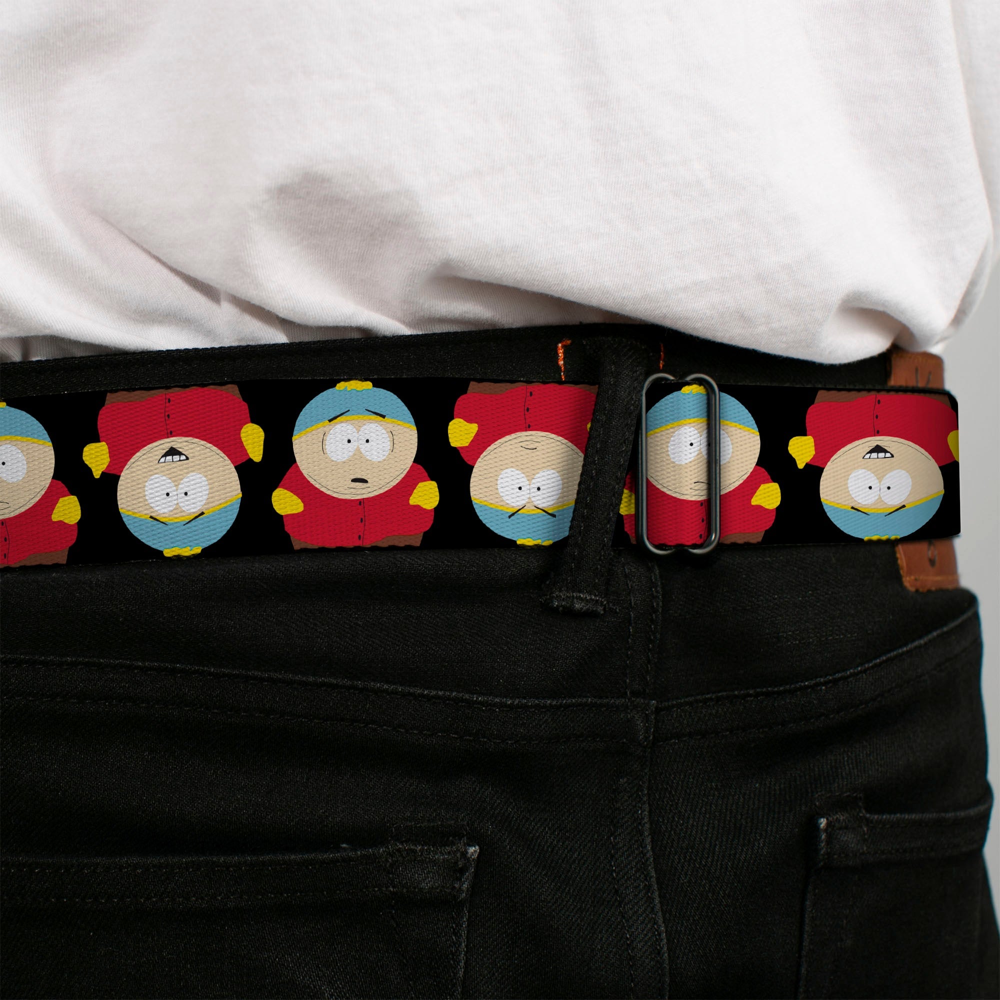 SOUTH PARK Title Logo Full Color Black/White Seatbelt Belt - South Park Cartman Flip Poses Black Webbing