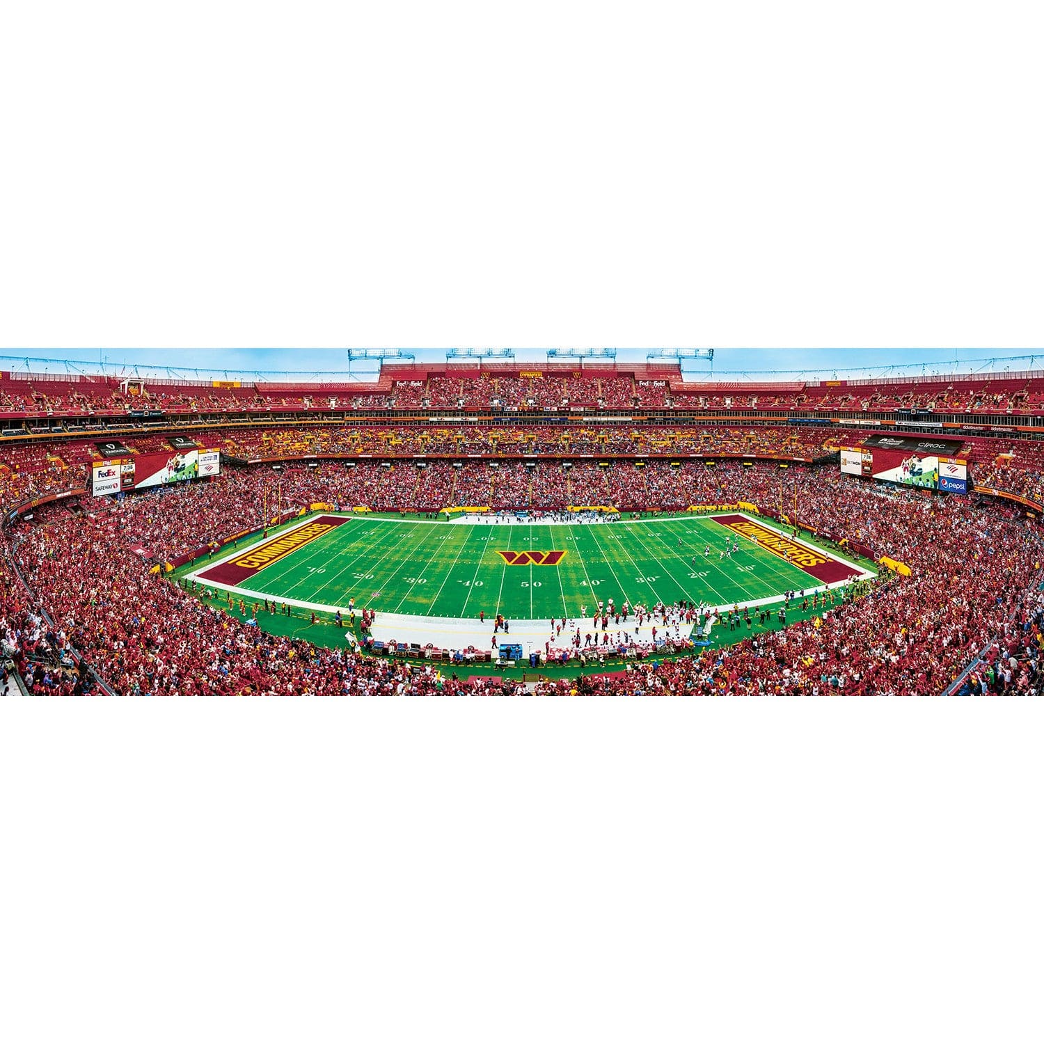 This MasterPieces Stadium Panoramic Washington Commanders 1000 Piece NFL Sports Jigsaw Puzzle - Center View captures the breathtaking view of the Stadium, allowing you to experience the excitement of game day right from your living room. With its incredible attention to detail, you'll feel like you are part of the photograph, surrounded by the roaring crowd and the vibrant team colors. Not only does this puzzle provide hours of entertainment for both children and adults, but it also carries a sense of environmental responsibility. The chipboard used in its construction is made from 100% recycled materials, making it a sustainable choice for puzzle enthusiasts. With its large size of 13" x 39", this puzzle is a challenging yet rewarding experience for puzzle enthusiasts aged 14 and up. Piece by piece, you'll recreate the iconic scene and celebrate your love for the Washington Commanders.