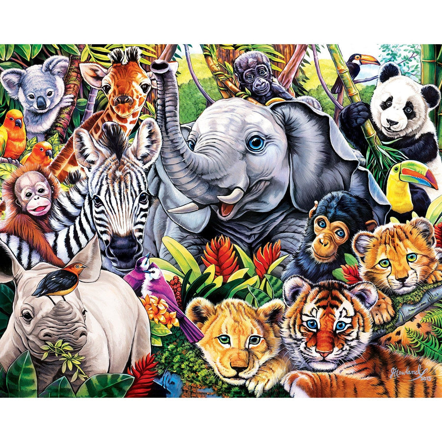 The MasterPieces World of Animals 4 Pack - 100 Piece Kids Jigsaw Puzzle will give you a thrilling adventure as your favorite animal friends unite across time and space. This puzzle pack brings together the wonders of the animal kingdom. From majestic forest bears to enchanting undersea dolphins, and from adorable baby tigers to prehistoric dinosaurs, these puzzles showcase the incredible creatures of the World of Animals. Each puzzle measures 8 inches by 10 inches and contains 100 pieces, making it the perfect challenge for kids aged 6 and up.