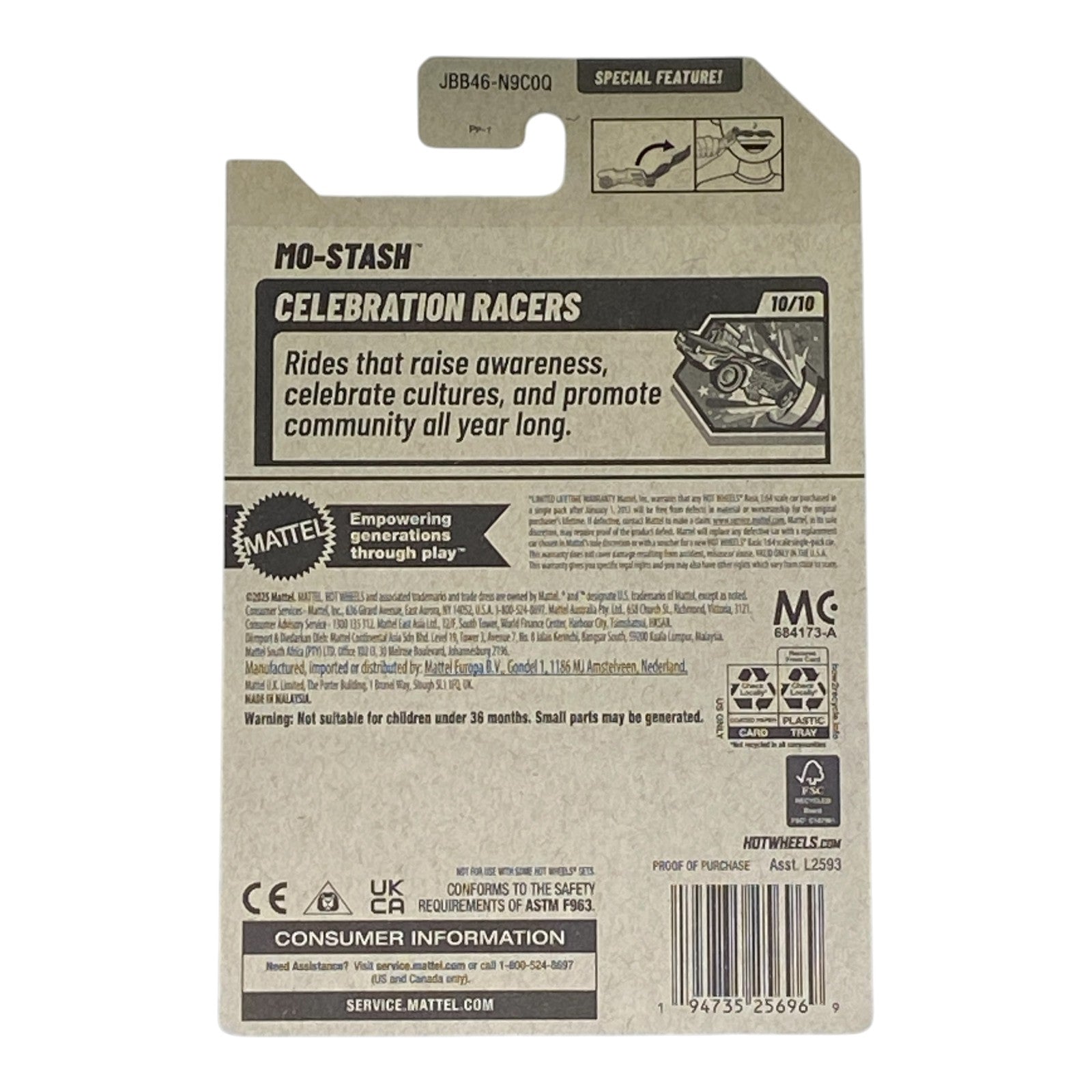 Rev up the party with the Hot Wheels Mo-Stash from the Celebration Racers Series 10/10! This vibrant die-cast model brings a fun, mustache-themed design to life, blending quirky style with high-speed flair. Perfect for collectors and Hot Wheels enthusiasts, it’s a unique addition for display or playful racing adventures.