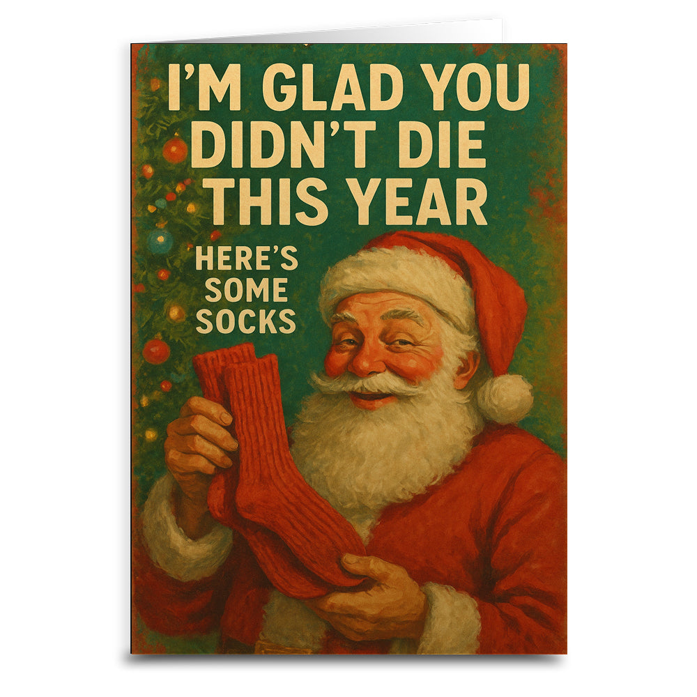 I'm Glad You Didn't Die, Here's Some Socks Christmas Card