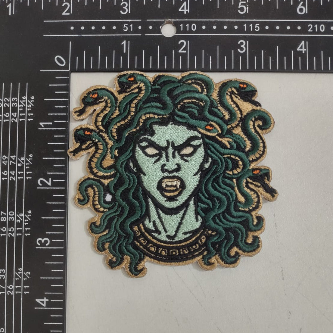 Measures approximately 3.5 by 3.5 inches with an iron on backing.