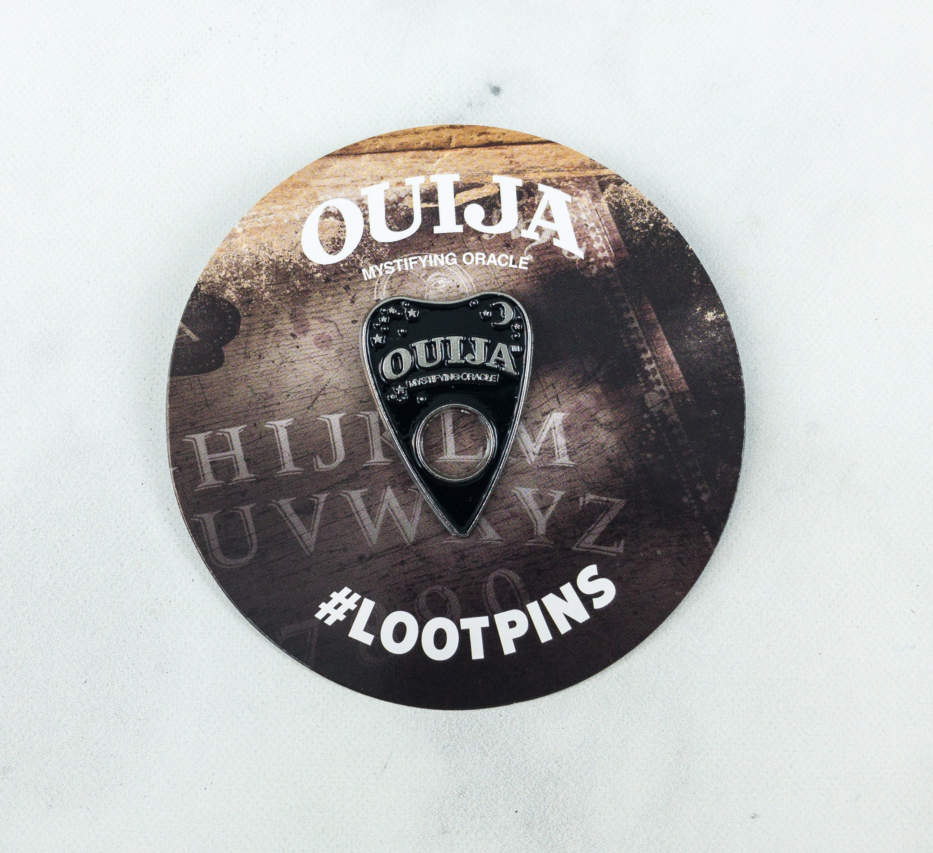 Ouija planchette pin, included in the October 2018 Loot Crate.