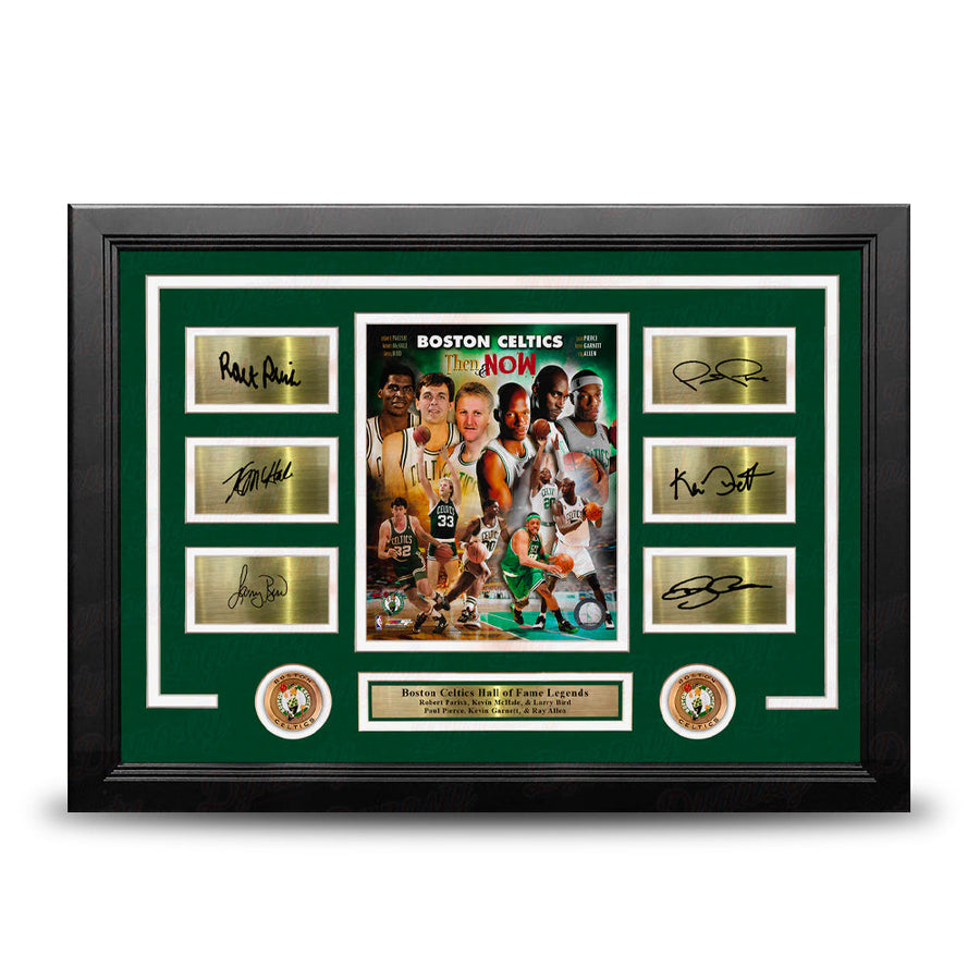 This officially licensed photo showcases 6 Boston Celtics all-time legends: Robert Parish, Kevin McHale, Larry Bird, Paul Pierce, Kevin Garnett, and Ray Allen.