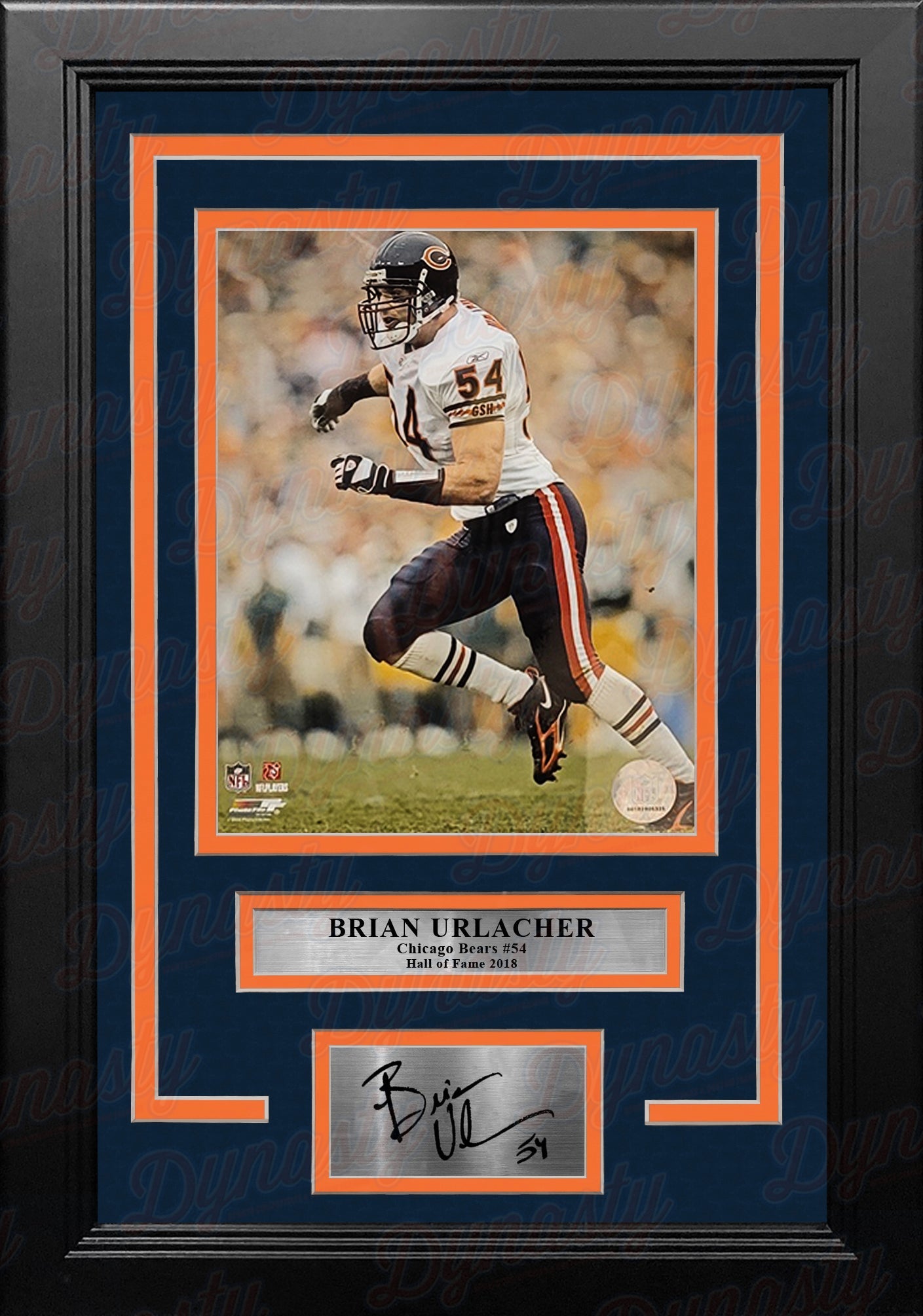 This officially licensed photo includes Bears Hall of Fame legend Brian Urlacher in action on the field