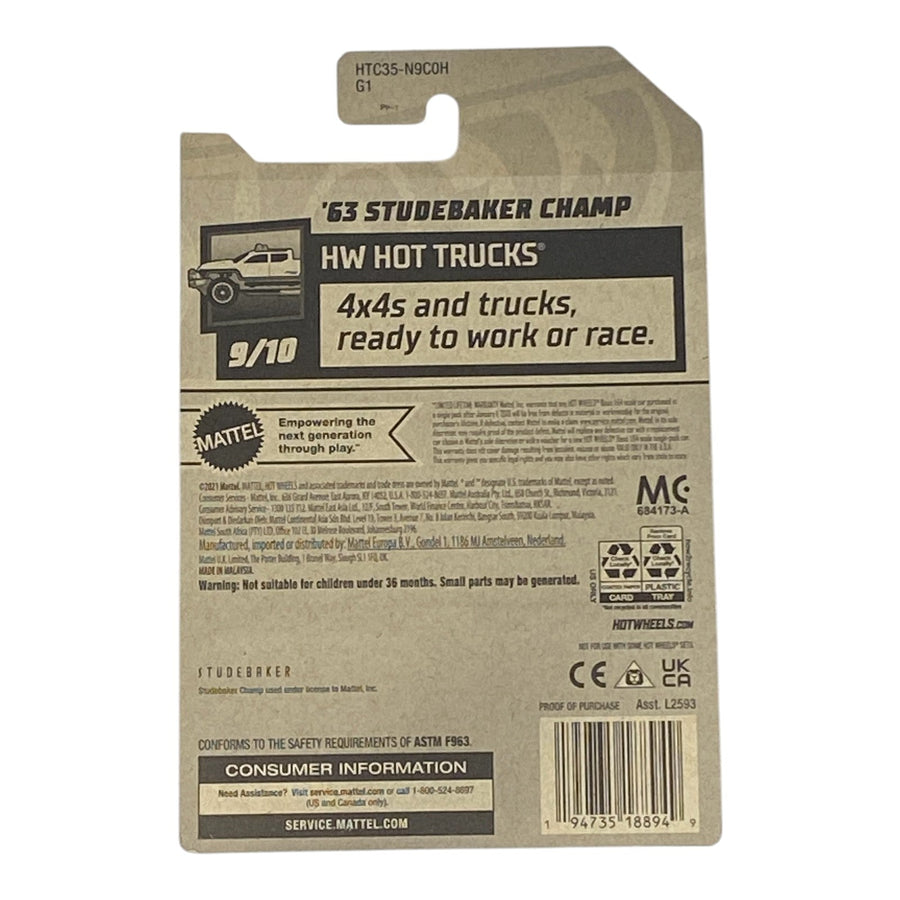 Add this striking red '63 Studebaker Champ to your Hot Wheels Hot Trucks lineup today and rev up your vintage diecast collection!