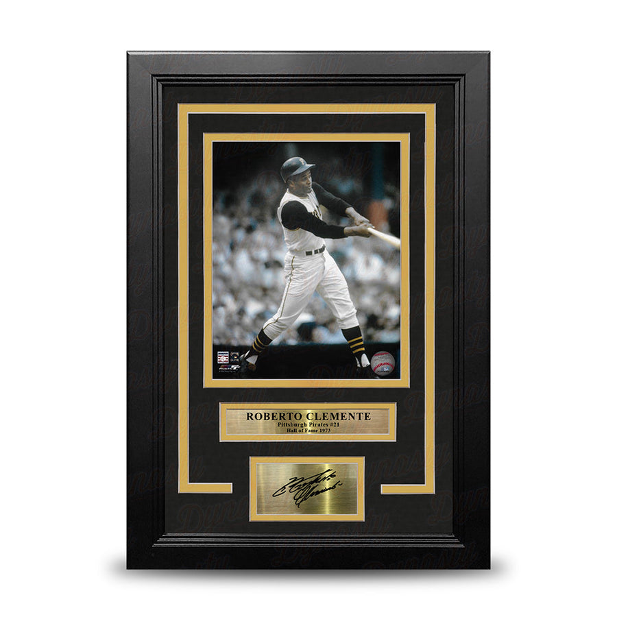 Roberto Clemente Swinging Action Pittsburgh Pirates 8" x 10" Framed Baseball Photo with Engraved Autograph