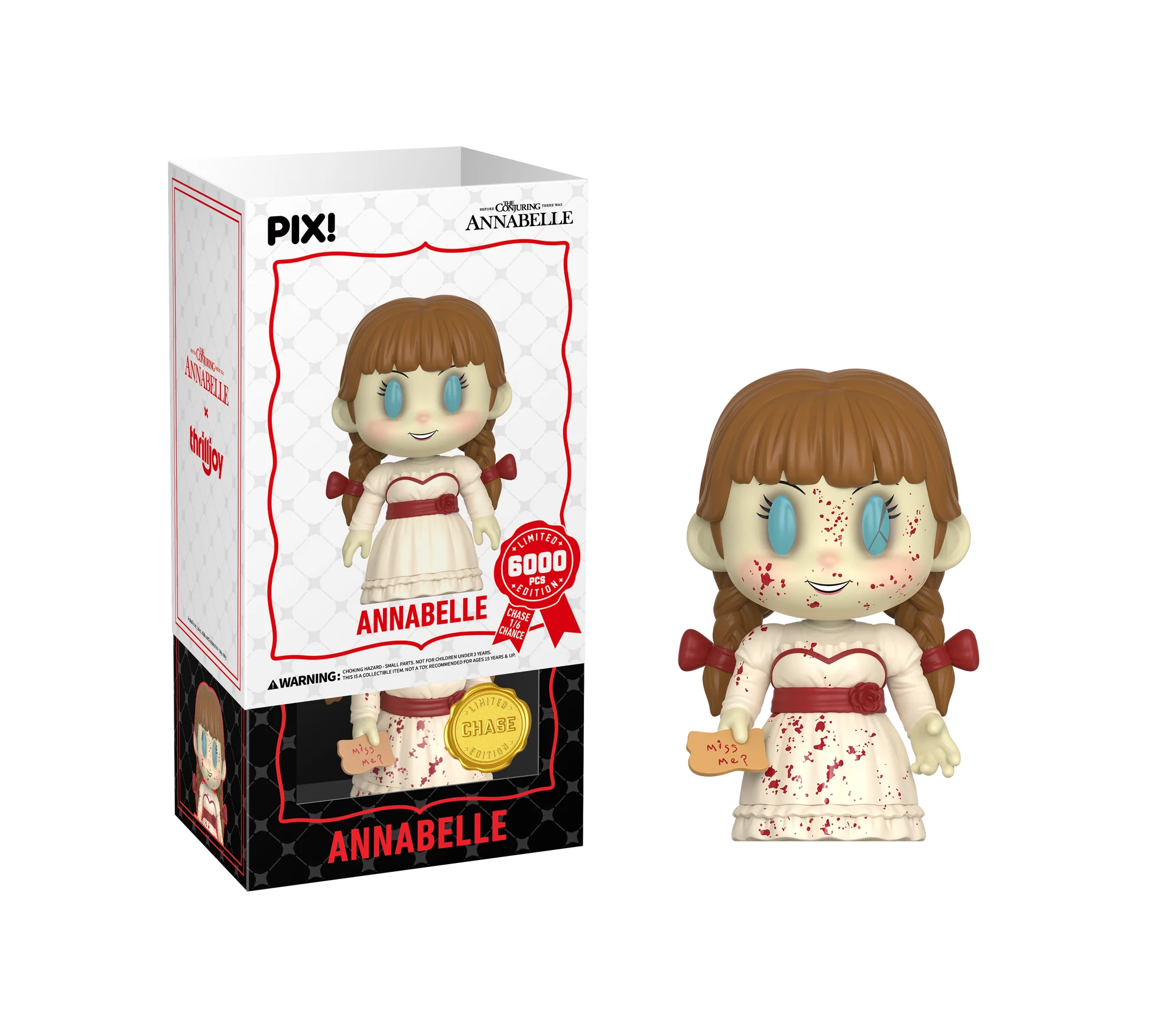 All Annabelle PIX! comes with a Certificate of Authenticity in the form of alaser printed, spot varnished collector’s card, and are ready to stack with therest of your collection. Each collectible has a 1-of-6 odds of a chase!