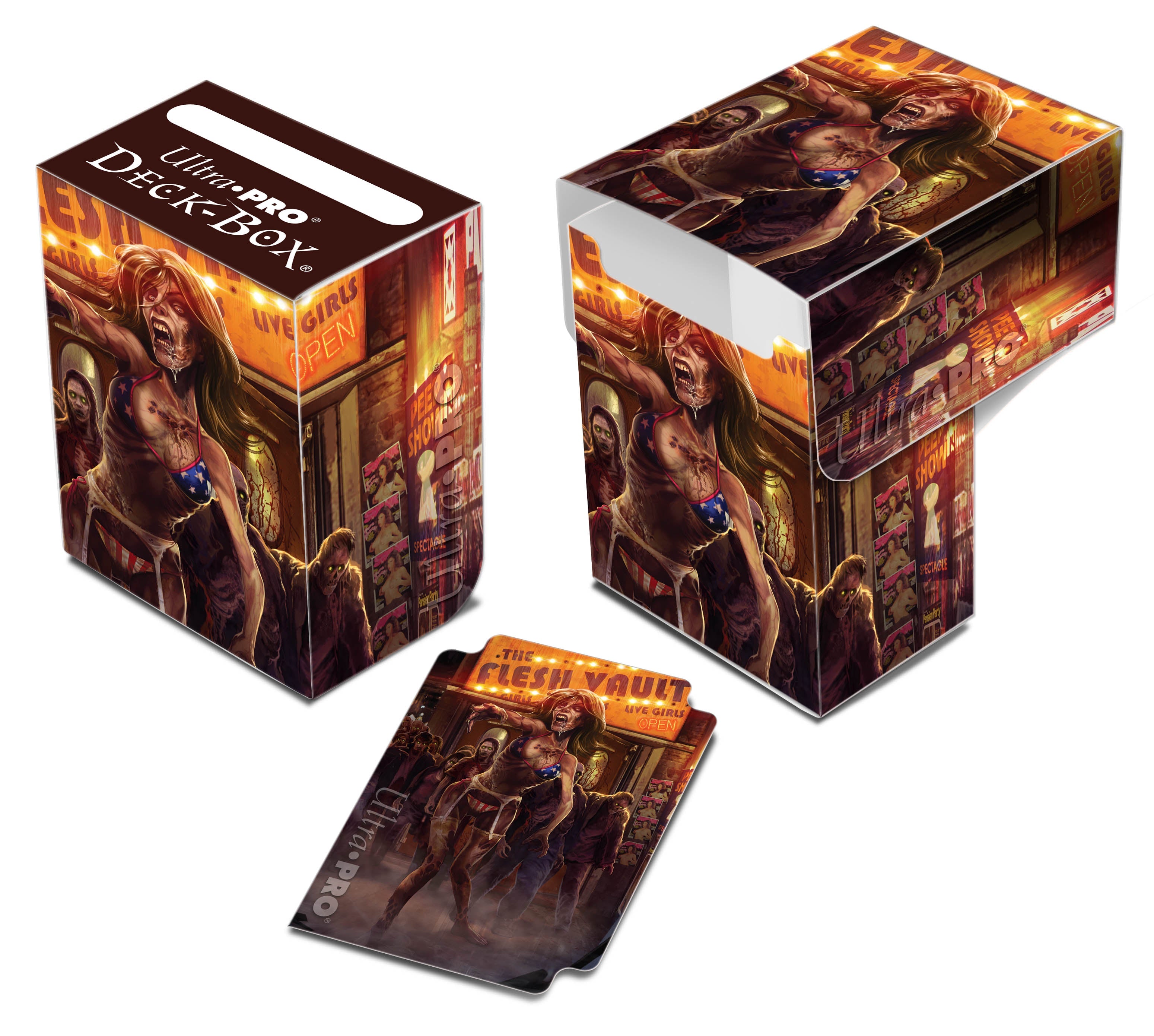 Protect your cards and store them in style with this Deck Box Betsy from UltraPRO original series Dead Wake. Ultra PRO's Deck Boxes are designed to hold and protect your cards from trading card games. This Deck Box is made from archival-safe polypropylene materials and holds up to 80 standard size cards in Deck Protector sleeves. The box is printed with beautiful full color artwork and comes with a bonus deck divider.