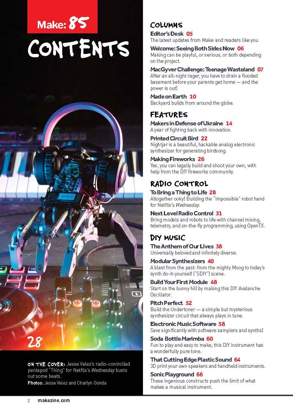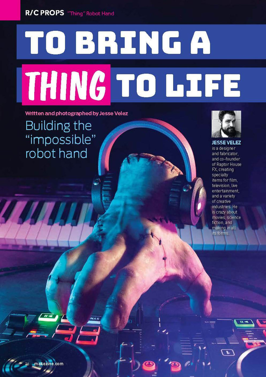 In this issue’s cover story, we go inside how an FX team built a working R/C prop of the famous disembodied hand “Thing” from Netflix’s Wednesday, and how you can bring your own props and robots to life with channel mixing, telemetry, and on-the-fly programming using OpenTX for your R/C transmitter.