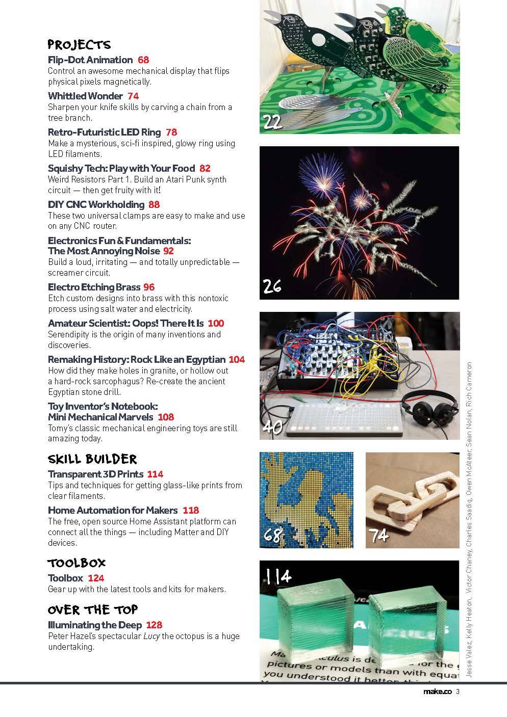 Then, we dive into exciting DIY music projects, starting with the burgeoning synth DIY (SDIY) scene. Get the ins and outs of how to kit out your modular synth setup, then build your own simple synth and learn what makes it squeal with the Mt. Brighton Avalanche Oscillator. Or, go low-tech with a great-sounding Soda Bottle Marimba you can build for pennies, or 3D print your own speakers and instruments.