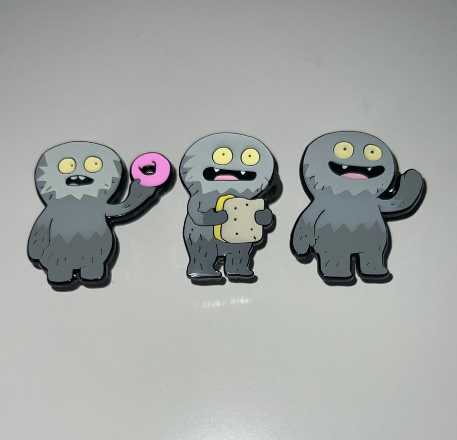A 3-pack of 1.5" enamel pins featuring UMA (Unidentified Mystery Animal), a character by David Horvath and Sun-Min Kim. This 3-pin pack is exclusive to Tenacious Toys. Each pin has 2 locking posts in the back for solid attachment to your shirt, cap or bag, and a smooth high quality finish!