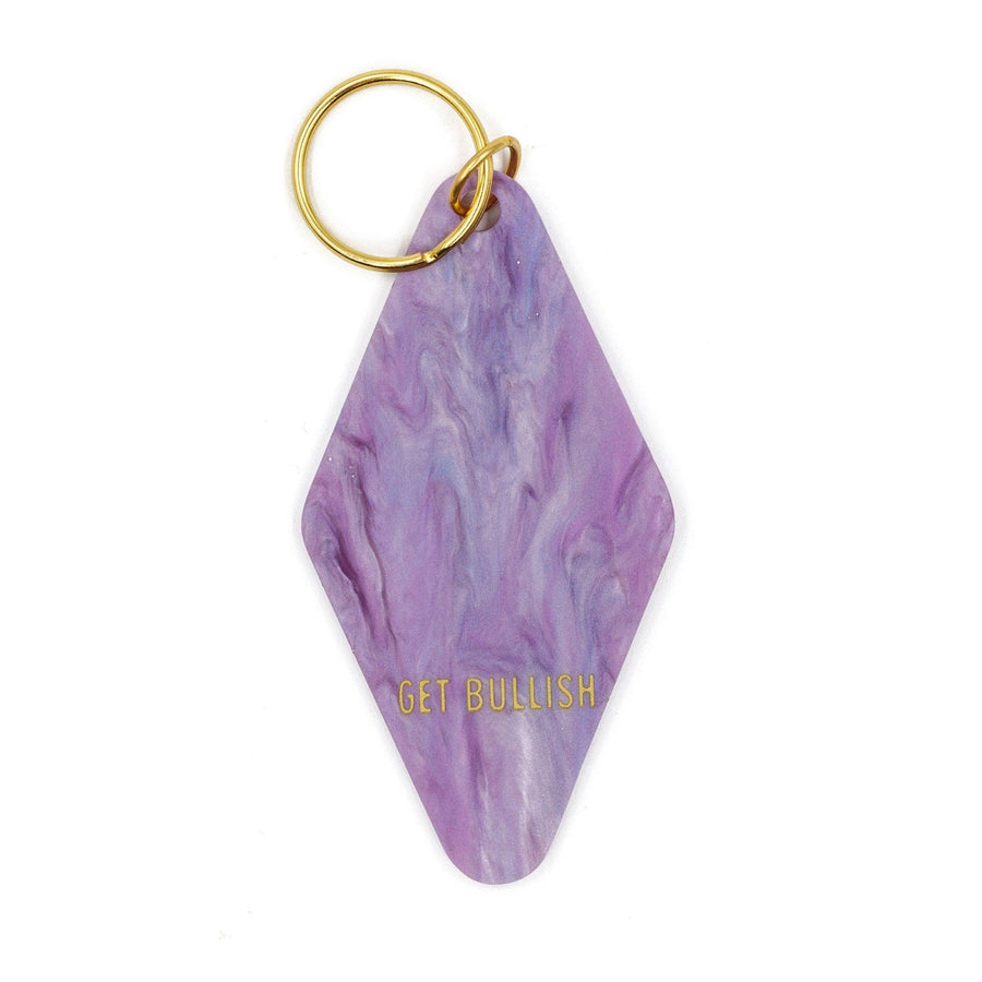 Hex the Patriarchy Feminist Motel Style Key Tag Keychain in Purple Galaxy Glitter