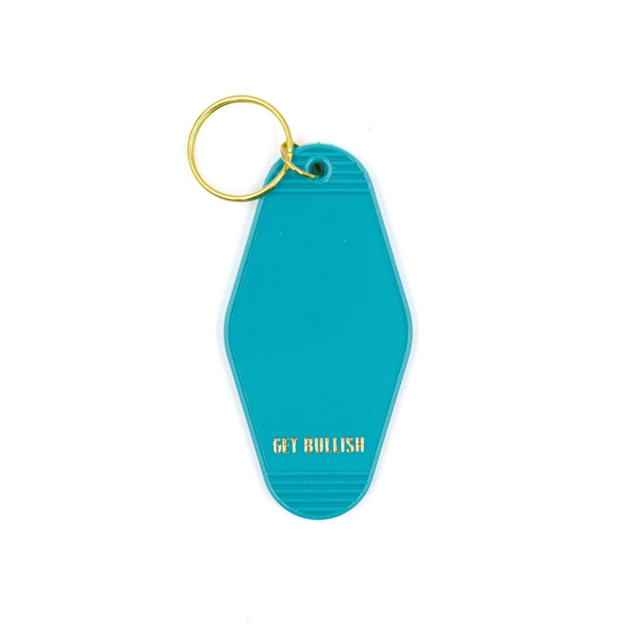 Add some attitude to your keychain collection with the OMG I DGAF Motel Keychain in Aqua Blue. This 3.5" brass keychain features bold gold lettering that reads "OMG I DGAF" on the front, with a subtle "GET BULLISH" on the back. Perfect for adding a touch of sass to your everyday essentials.
