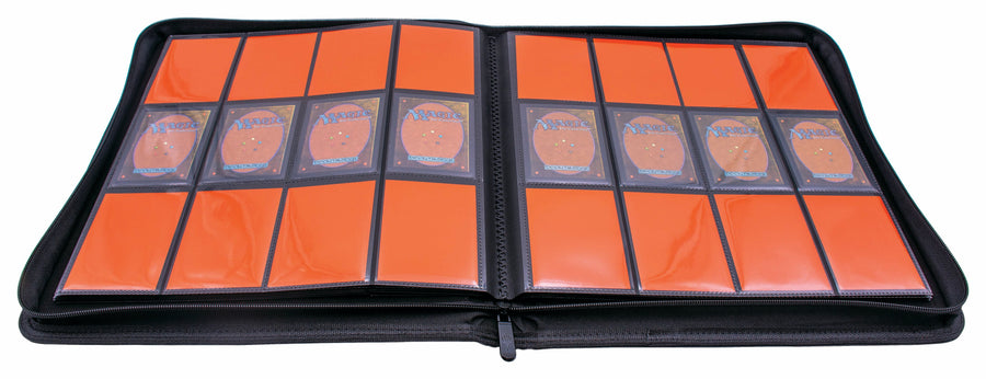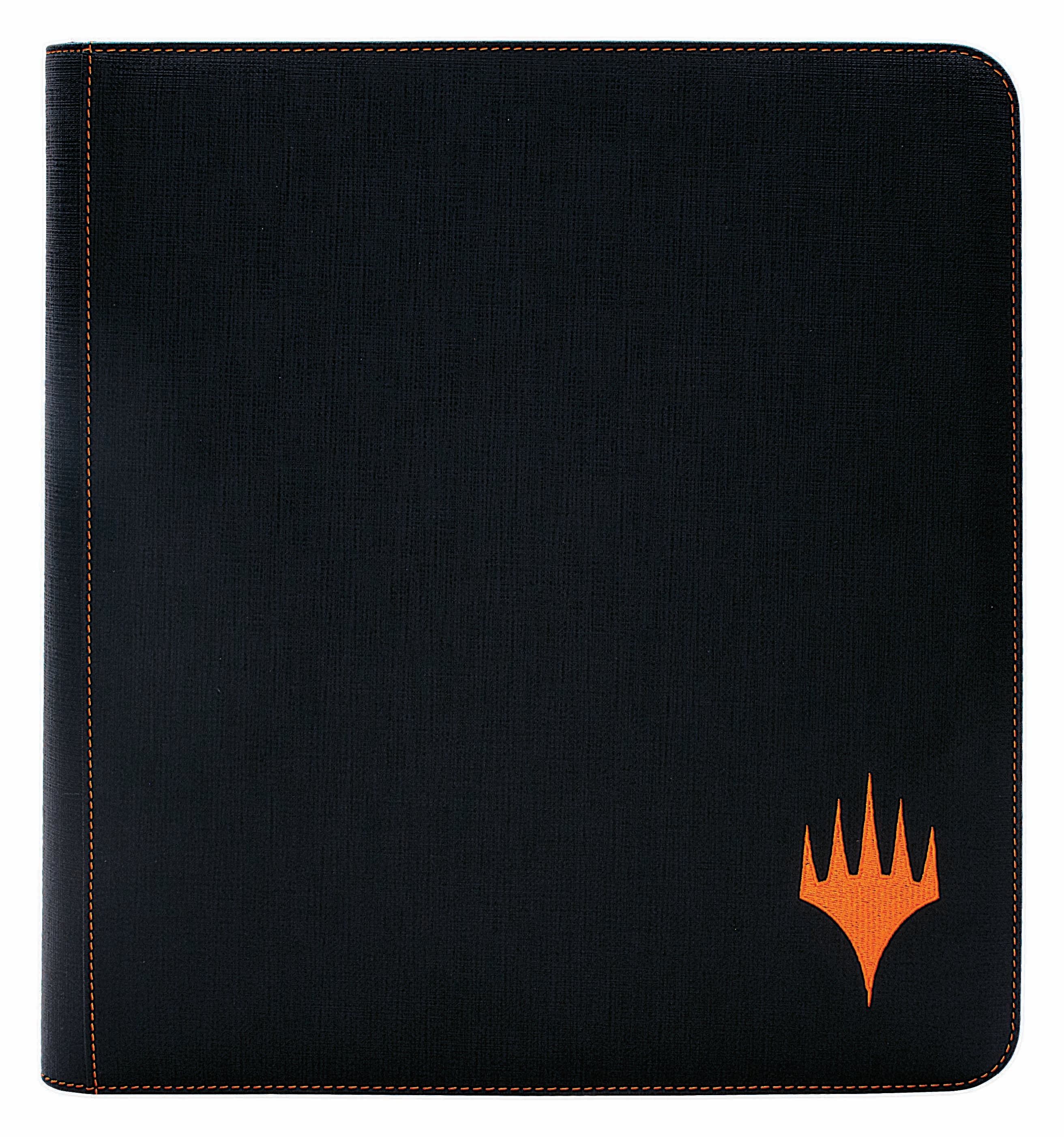 The Mythic Editions are Ultra PRO's most premium accessories for Magic: The Gathering. This 12-Pocket PRO-Binder features a black leatherette material with a mythic orange embroidered Planeswalker symbol and matching stitching. Store and protect up to 480 standard size trading cards sleeved in Ultra PRO Deck Protector sleeves. Each page is backed with a low-friction, black web material to give cards a classic, framed look. The zippered closure and side-loading pockets help prevent your cards from easily falling out. All materials are archival-safe, acid-free, and non-PVC for premium protection.