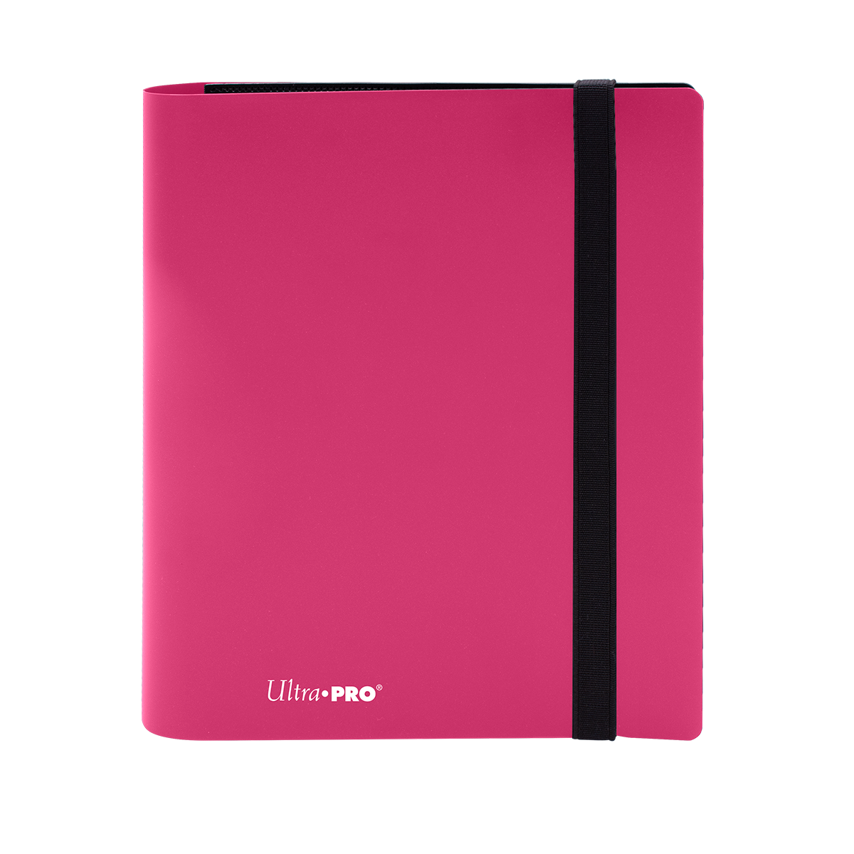 4-pocket Hot Pink PRO-Binder with embossed middle black web material gives cards a classic framed look. Side loading pocket design to prevent cards from easily falling out. Elastic strap holds the binder shut when not in use. All materials made from archival-safe, acid-free non-PVC material. Holds 160 cards in Ultra PRO Deck Protector sleeves.