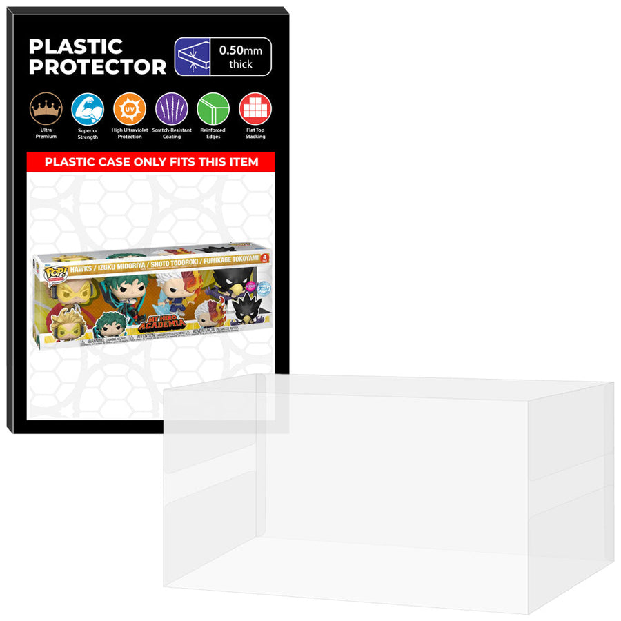 0.60mm Thick UV Resistant Plastic Pop Protector Compatible with Funko Pop My Hero Academia Hawks, Izuku Midoriya, Shoto Todoroki and Fumikage Tokoyami Flocked 4 Pack Box (6.25h x 17.5w x 3.5d)