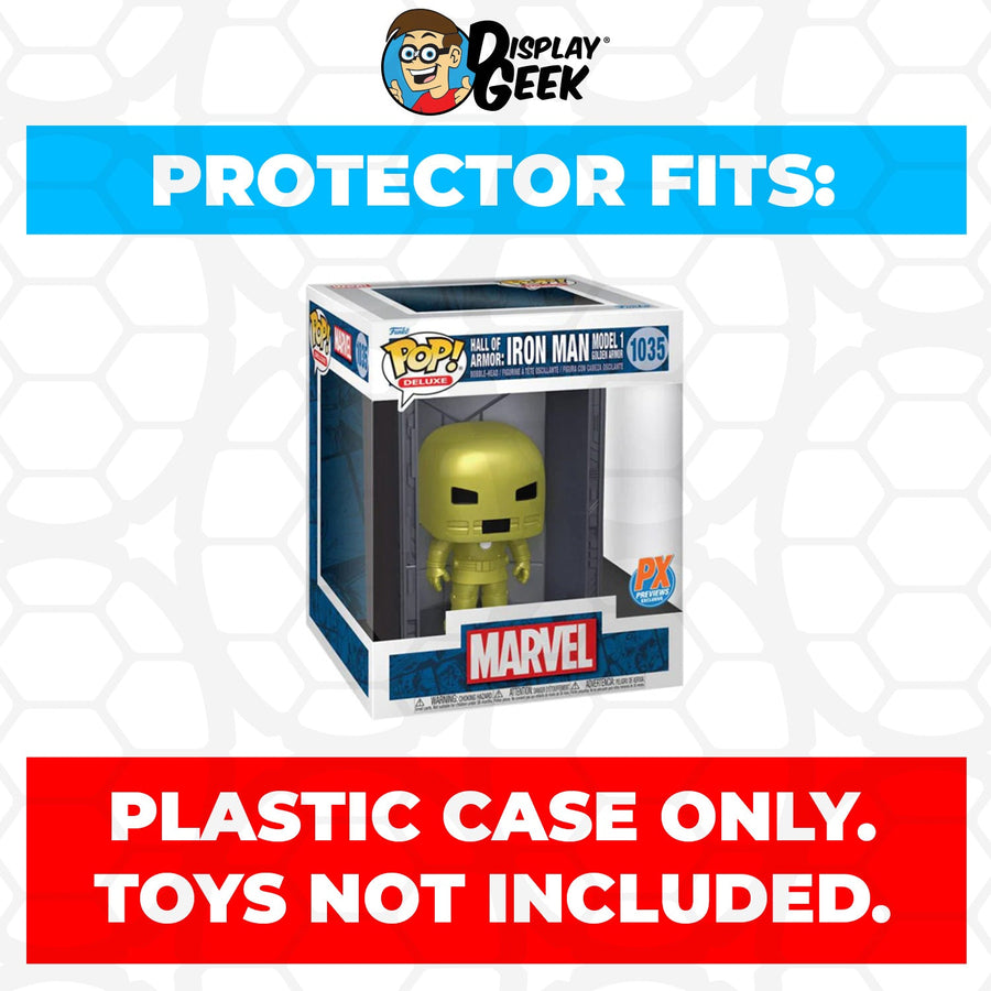 Plastic Pop Protector Compatible with Hall of Armor Iron Man Model 1 Golden Armor #1035 Funko Pop Deluxe