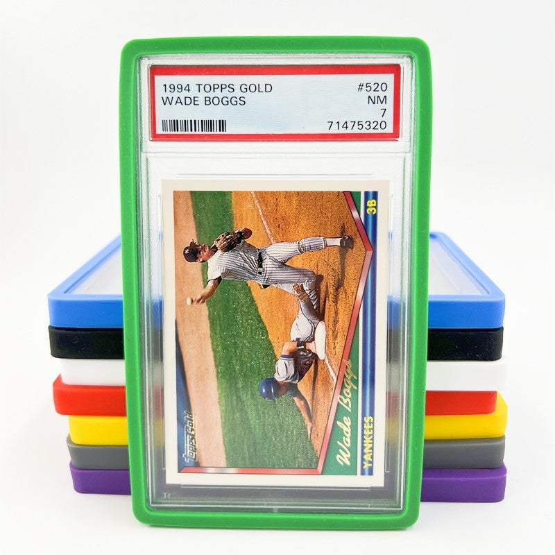 This Bumper Guard is for PSA-graded card slabs only. 7 color variations to personalize the graded card according to the matching color desired. Comes in Red, Blue, Green, Black, White, Yellow, and Purple. Providing protection for your PSA-graded cards. Protects the edges from cracks and dents. Protects against accidental fall damage and gives the consumer ease of mind with the protection. Raised borders on the guards which makes the PSA graded cards stackable and will not scratch the surface of the slab. Thick and Durable material made with high-grade silicone that will make sure these bumper guards last for years to come. Easy to insert and remove your PSA-graded card slab. Simply push the slab in the bumper guard and enclose all corners in the cover for a snug fit. To remove just life a corner and push out to remove the slab. Includes Graded Card Protectors Only. Cards in the image are not included. Will not fit other slab brands.