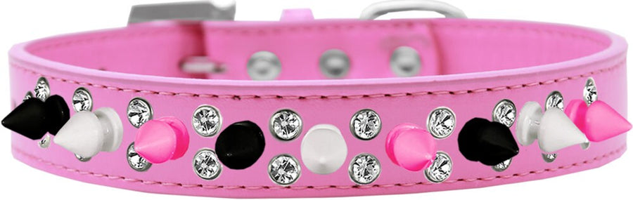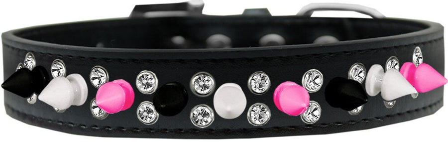 Pet and Dog Spike Collar, "Double Crystal & Black, White and Bright Pink Spikes"