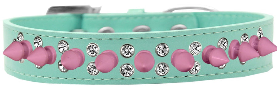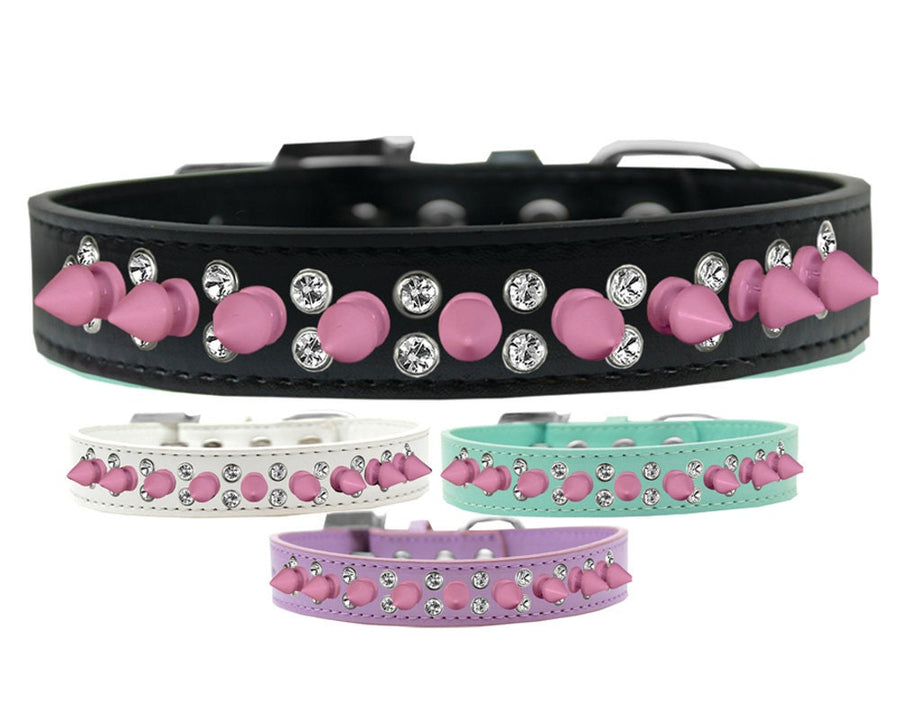 Pet and Dog Spike Collar, "Double Crystal & Light Pink Spikes"