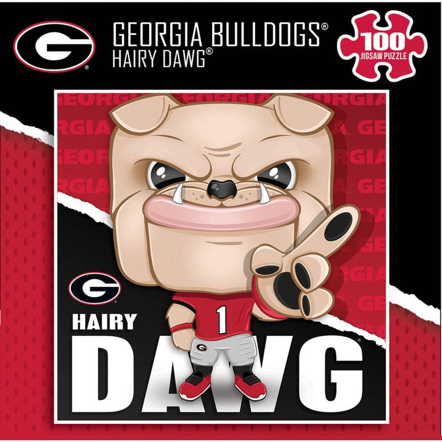 Discover the perfect addition to your Georgia Bulldogs merchandise collection with this officially licensed Hairy Dawg puzzle. This 100-piece jigsaw puzzle is a must-have for fans of Georgia Bulldogs decor and novelties. Featuring the beloved Georgia Mascot, Hairy Dawg the Bulldog, this puzzle measures 10" x 10" and is crafted from thick recycled puzzle board, ensuring a tight interlocking fit for a satisfying assembly experience. Ideal for ages 6 and up, this puzzle not only provides hours of entertainment but also enhances problem-solving skills. Whether you're looking to add to your Georgia Bulldogs wall decor or searching for unique Georgia Bulldogs desk accessories, this puzzle is a versatile choice. Lightweight and portable, it's perfect for tabletop play and easy to store. Embrace the spirit of the Georgia Bulldogs with this engaging puzzle, a great gift for any fan or a delightful addition to your own collection.
