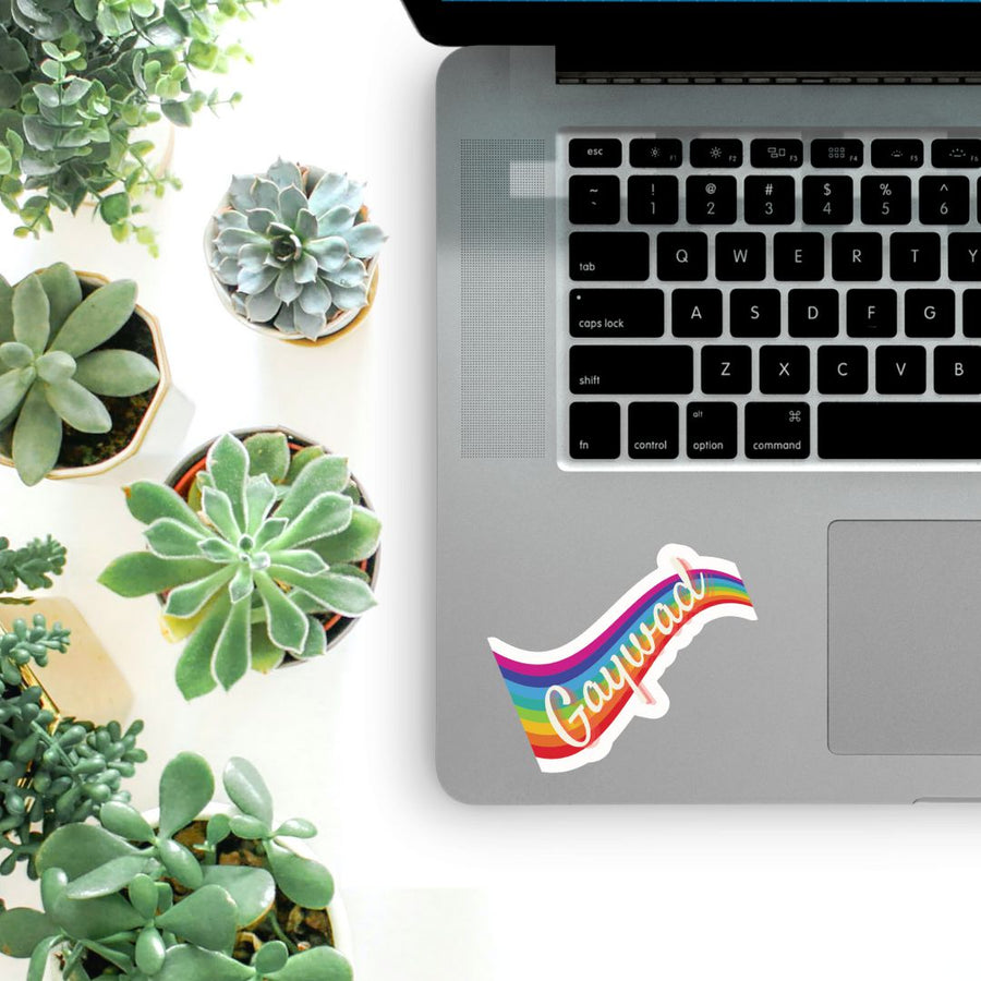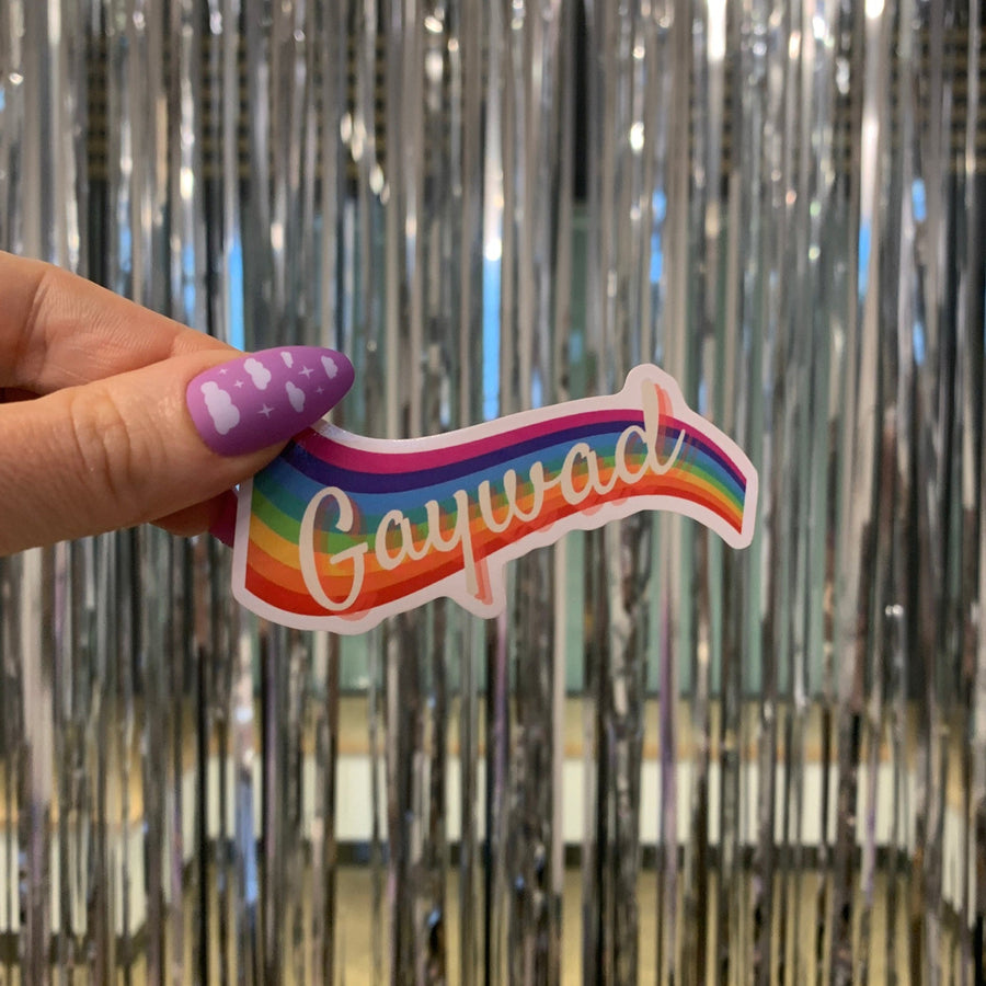 Declare your pride with the Gaywad '80s-'90 Retro LGBTQ+ Glossy Die Cut Vinyl Sticker, perfect for adding a bold statement to laptops, water bottles, bikes, and more. This 2.95" x 1.77" sticker features a vibrant glossy finish and a split back for easy application, making it a unique and meaningful gift for LGBTQ+ friends and allies.