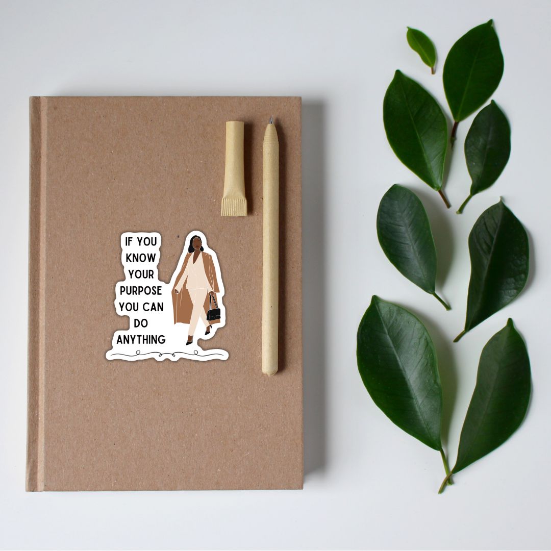 Show off your unique spirit with this vibrant If You Know Your Purpose You Can Do Anything die-cut vinyl sticker, perfect for laptops, water bottles, bikes, and more. Makes a thoughtful gift for inspiring Black women who are ready to make their mark on the world!