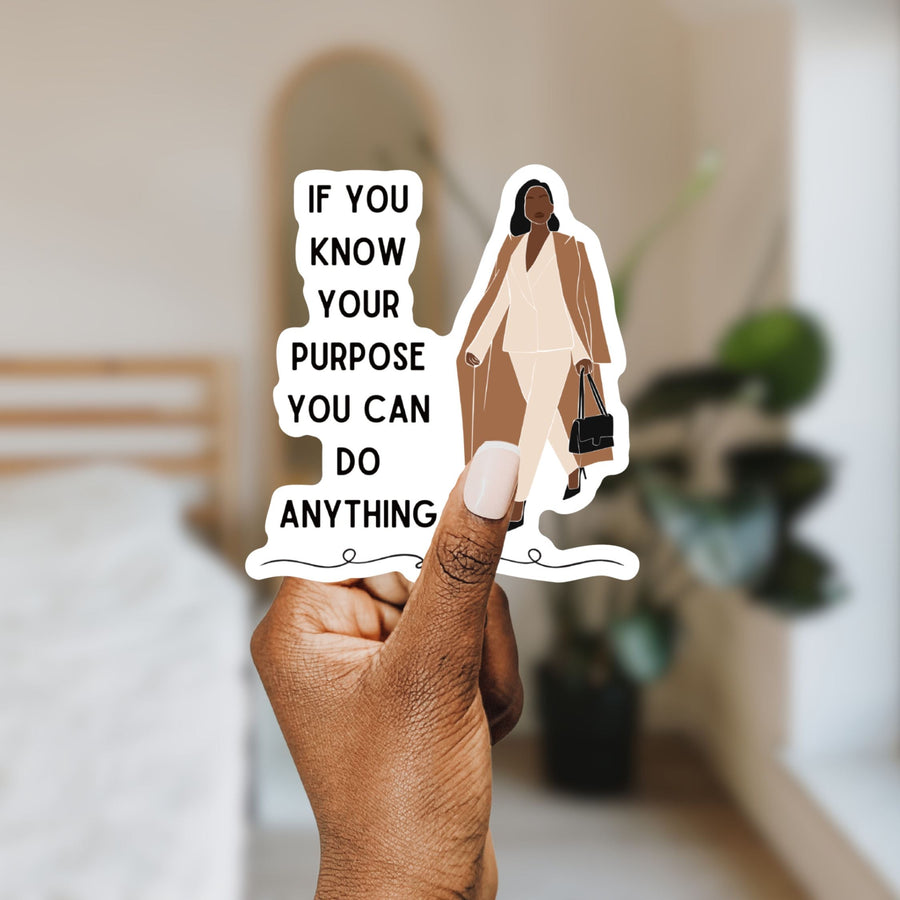 Make your mark on the world with this If You Know Your Purpose You Can Do Anything die-cut vinyl sticker! It's the perfect way to show the world your unique spirit and let your dreams take flight ✈️. Make a statement--you got this 💪!