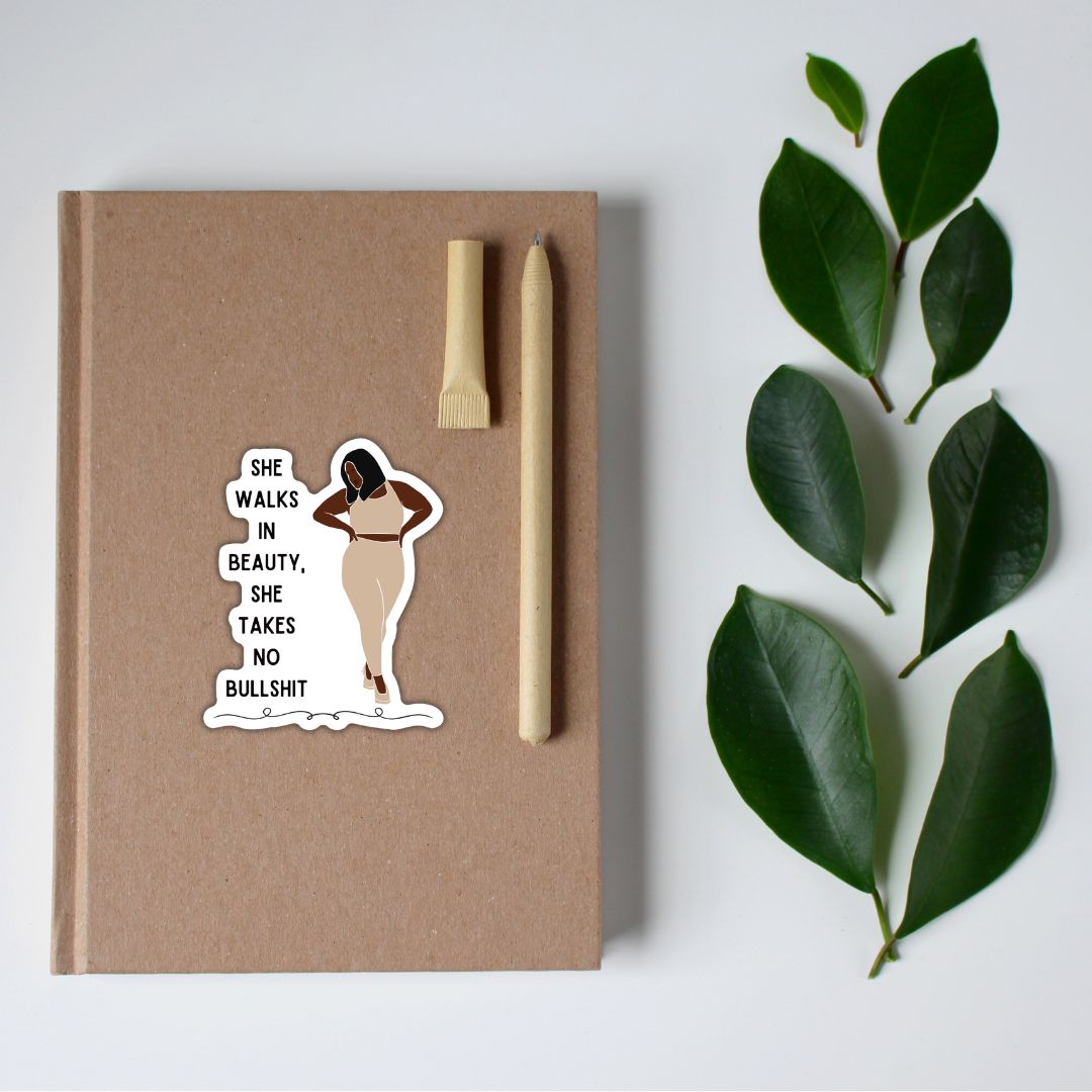 This She Walks in Beauty 💃, She Takes No Bullshit die-cut vinyl sticker is sure to put a smile on your face. Give yourself an extra dose of sass and show 'em who's boss with this fun, quirky sticker. Stand up for yourself and live your life with confidence 💪😉!