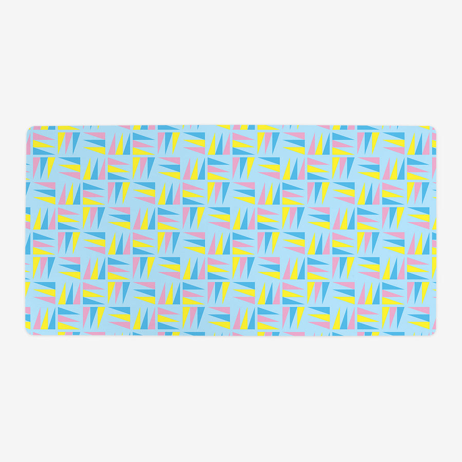 Oversized Playmat measures at 28” x 14” inches and is 1/16 of an inch thick. It’s made with a smooth cloth top and strong rubber backing.